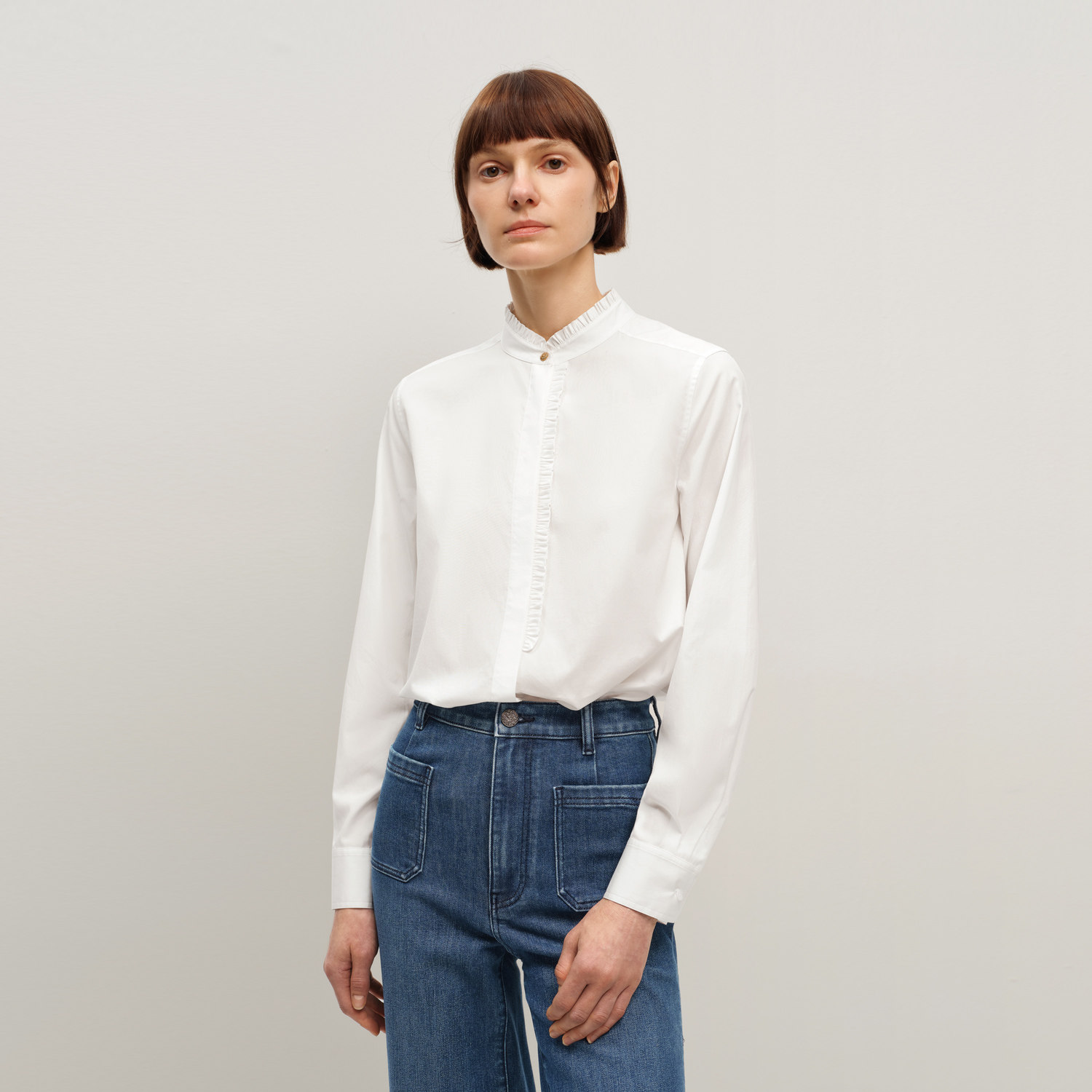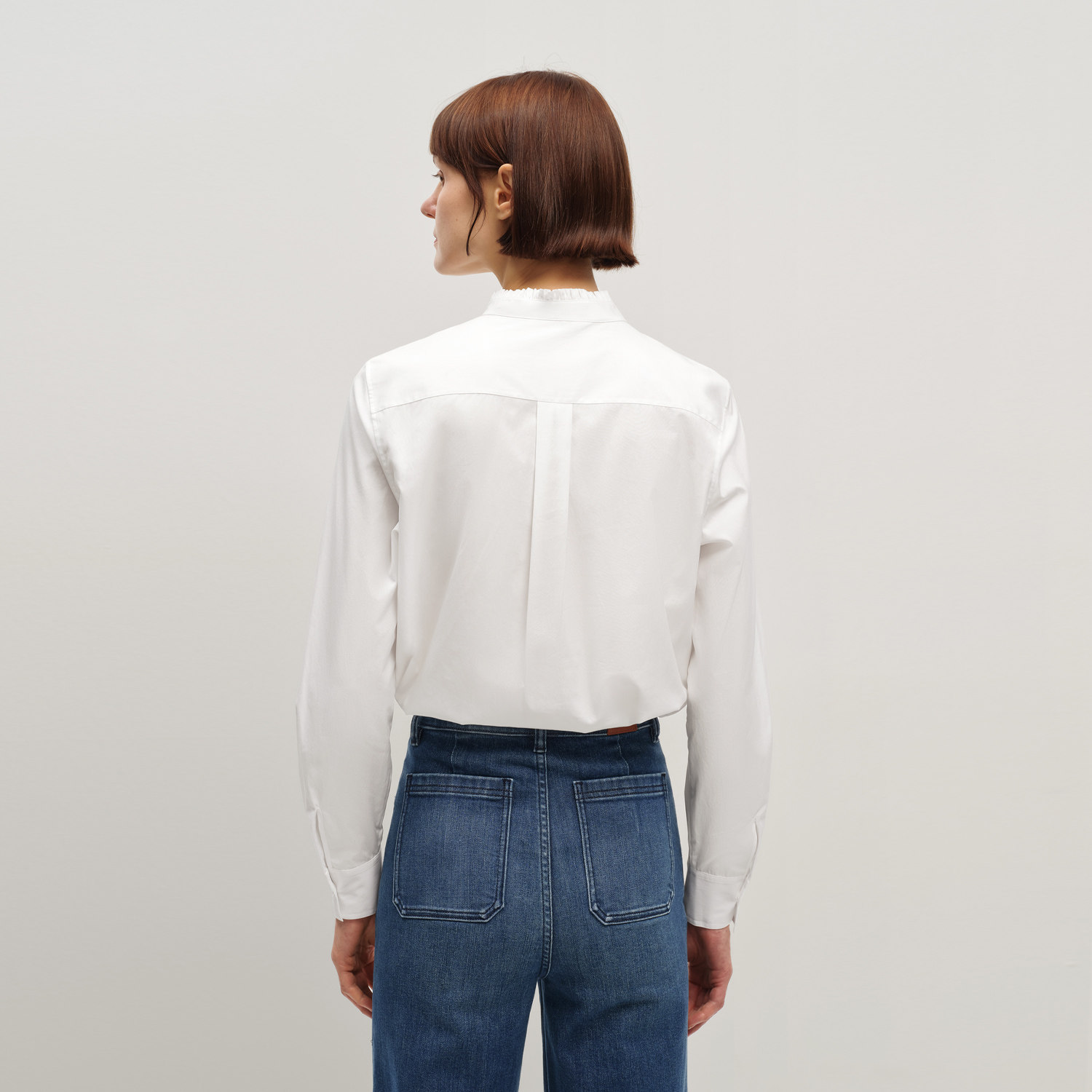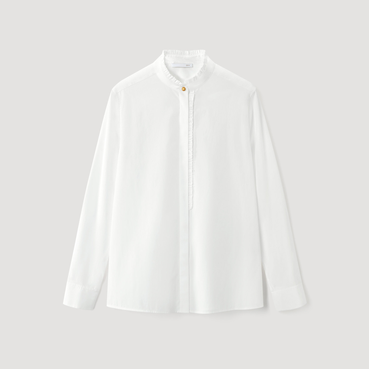 OVV2025秋冬新款女装精致木耳边装饰匹马棉空气洗长袖休闲衬衫