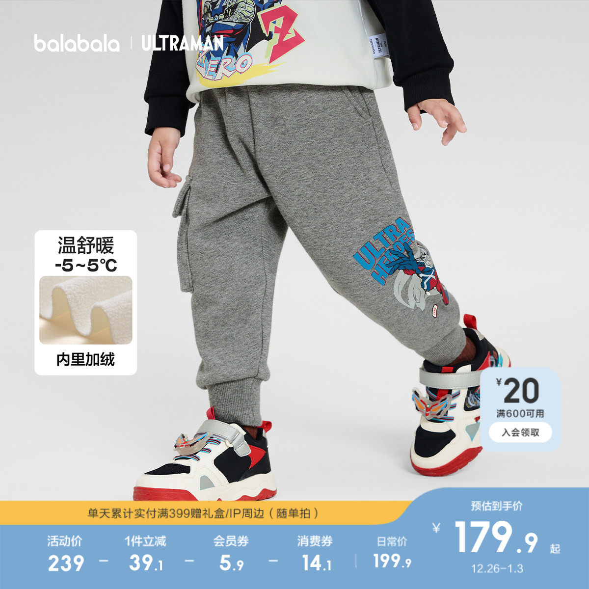 【奥特曼IP商场同款】巴拉巴拉童装儿童裤子男加绒长裤2025冬新款