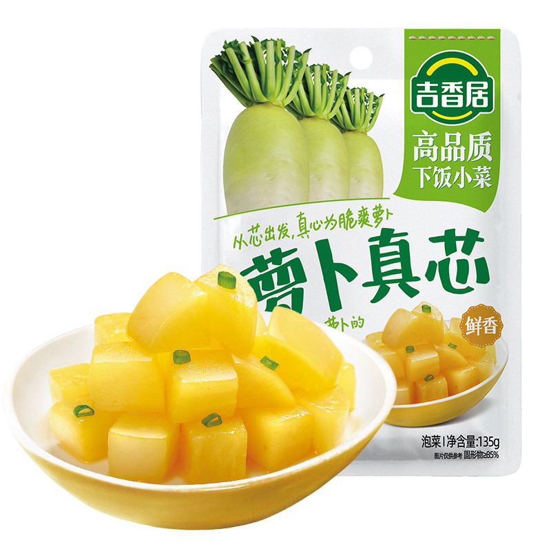 吉香居135g榨菜真芯鲜香原味香辣萝卜微辣清淡脆口菜芯脆丝小菜