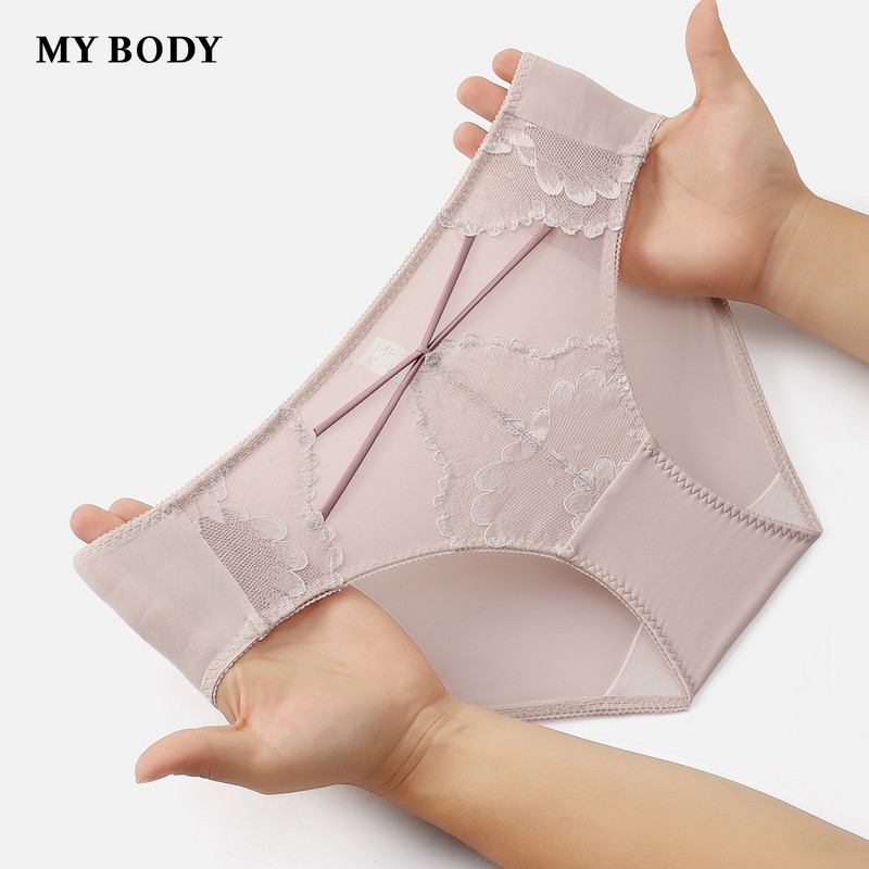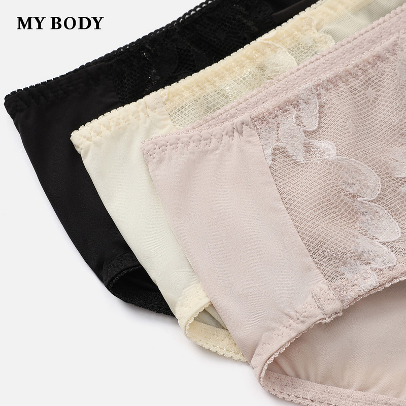 3件159|商场同款MYBODY舒适无侧缝女士内裤精致经典蕾丝平角裤