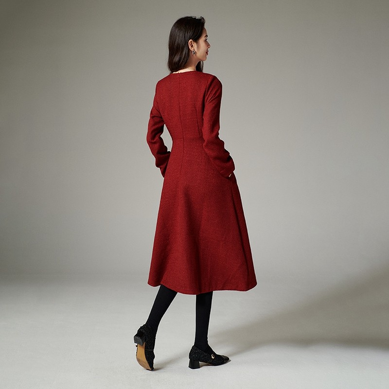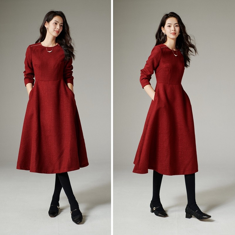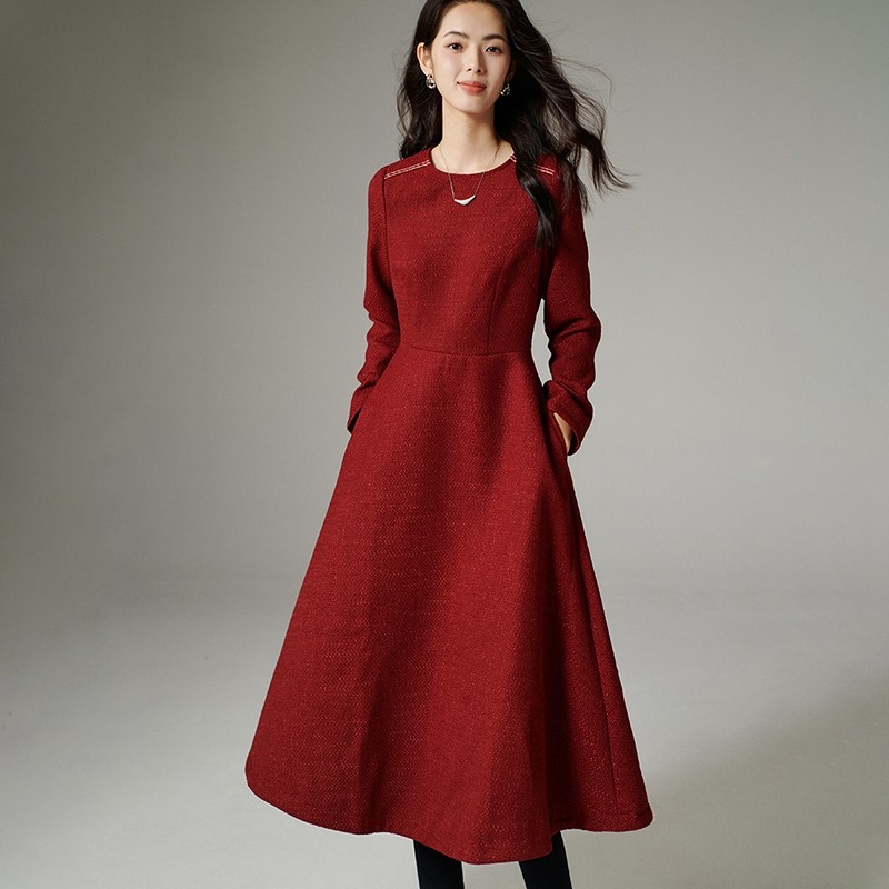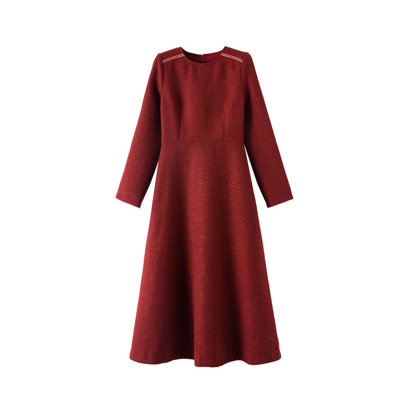 晚白2025年秋冬新款时尚简约新年圣诞裙子气质喜庆红色长袖连衣裙