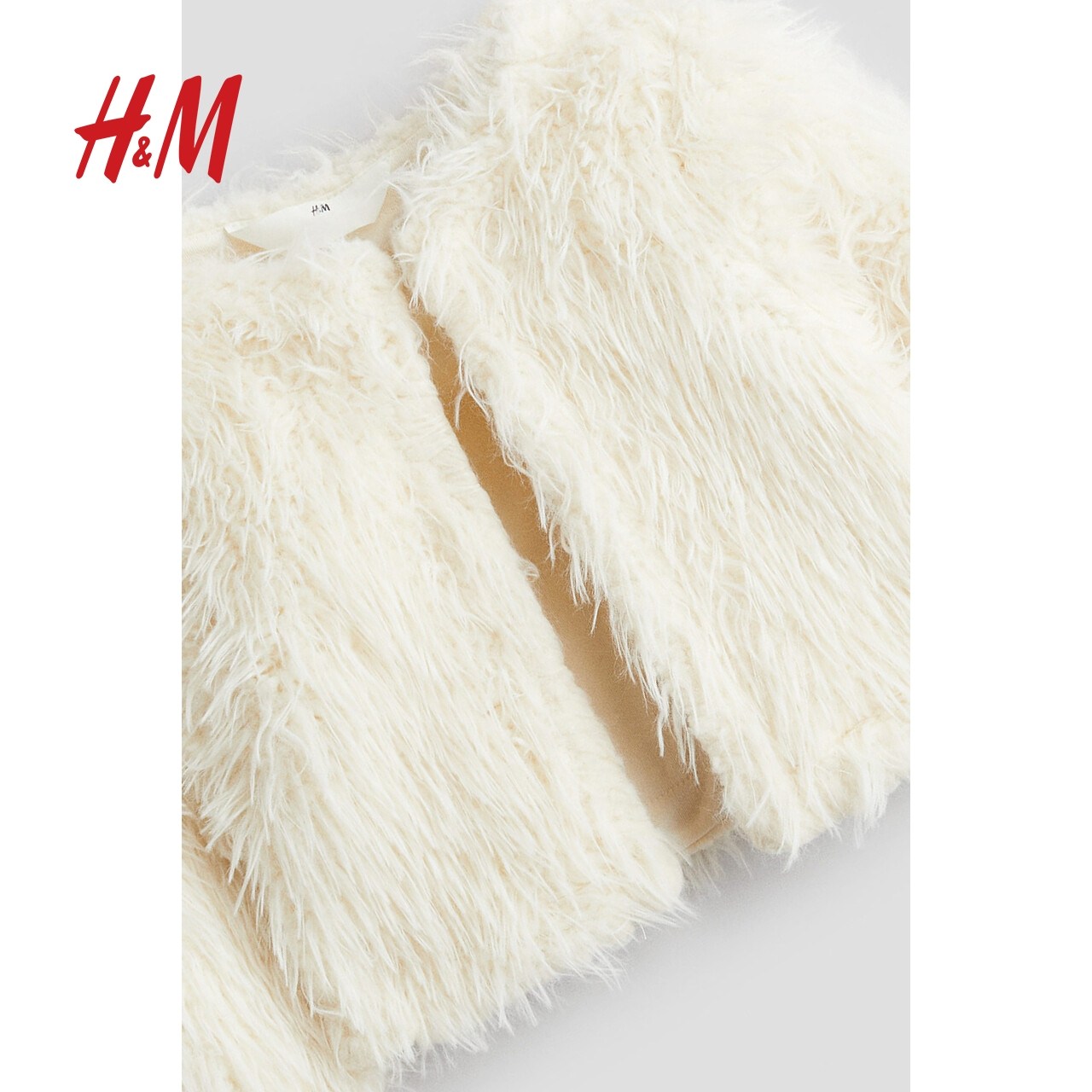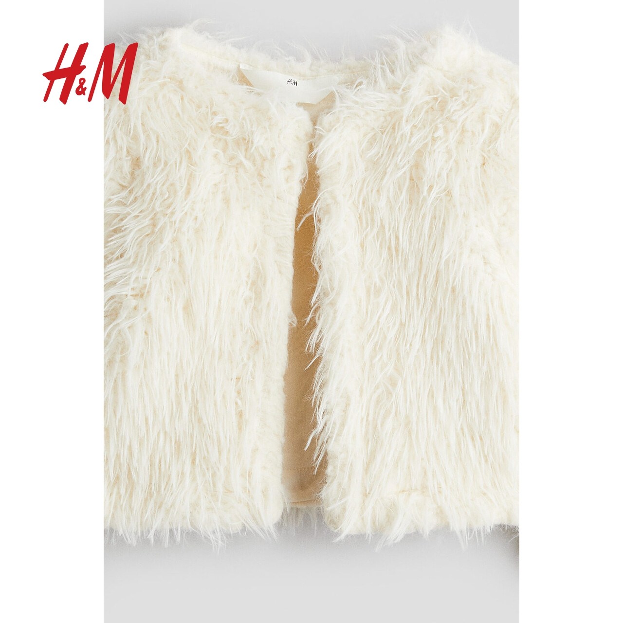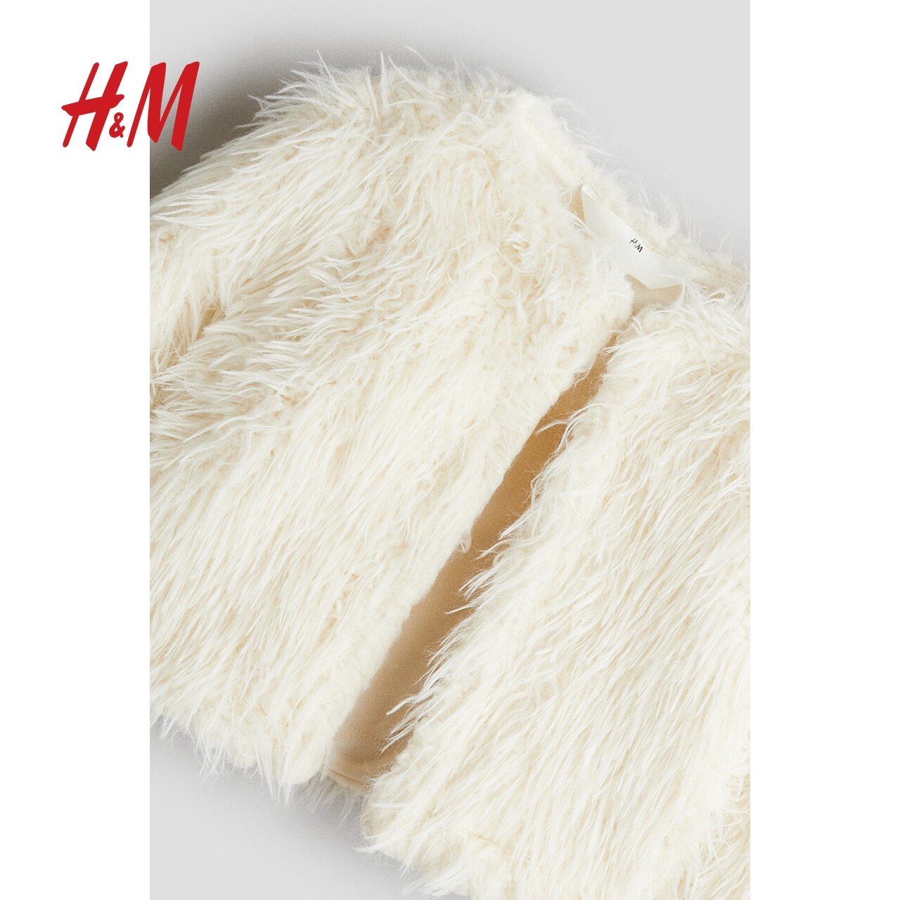 HM童装儿童女童外套春季修身圆领舒适仿皮草外套1247530