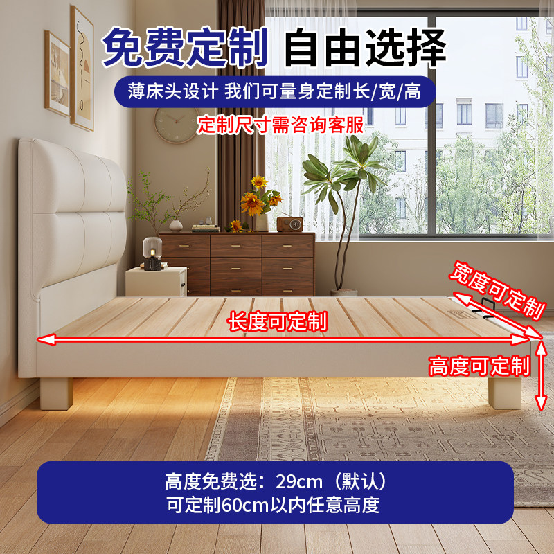 全实木齐边薄床头床小户型1.5m现代简约卧室双人床可定制任意尺寸