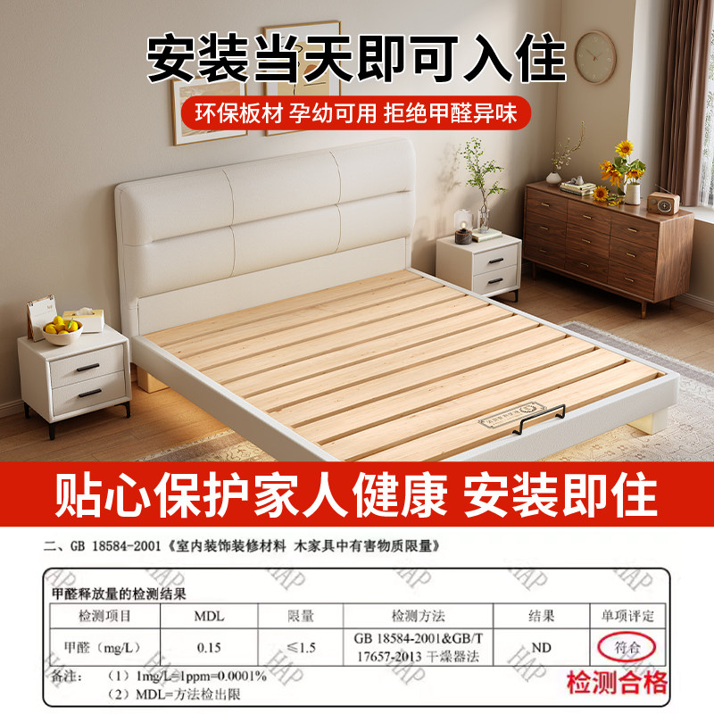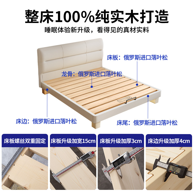 奶油风燕尾榫静音实木床现代简约小户型1.5m齐边大床支持定制尺寸