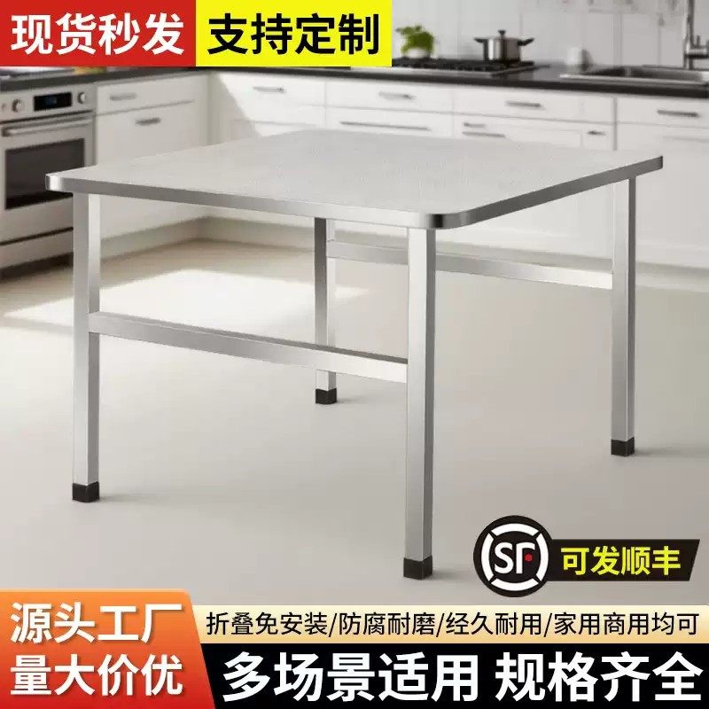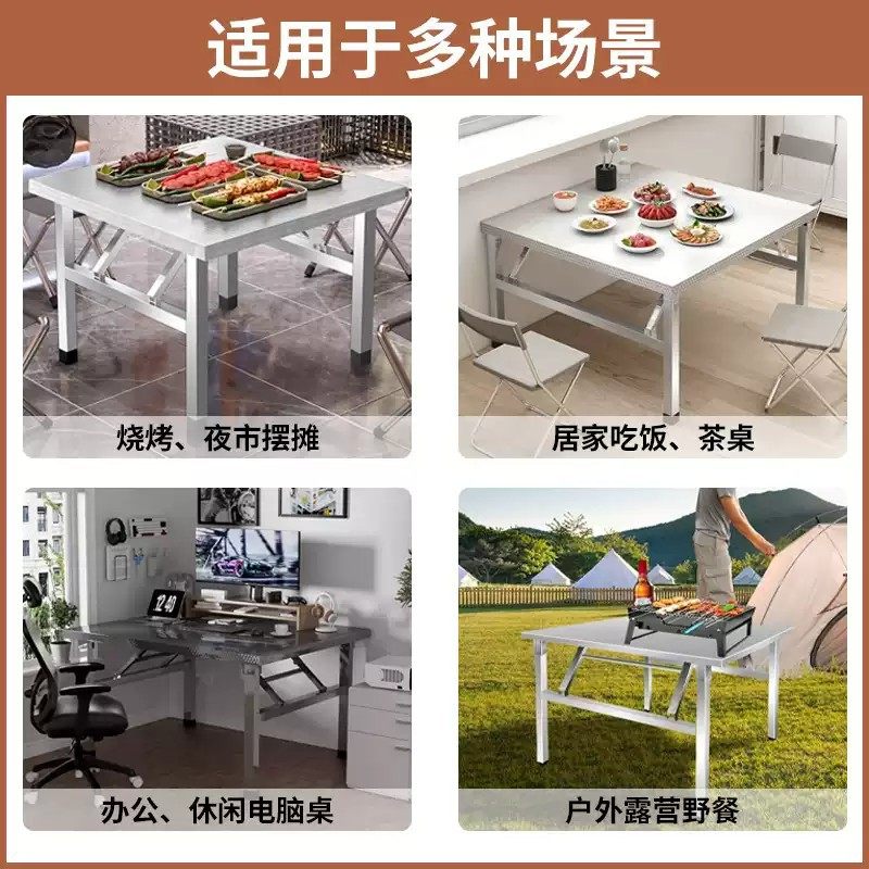 不锈钢可折叠桌子夜市摆摊烧烤方桌户外便携餐桌家用出租屋学习桌