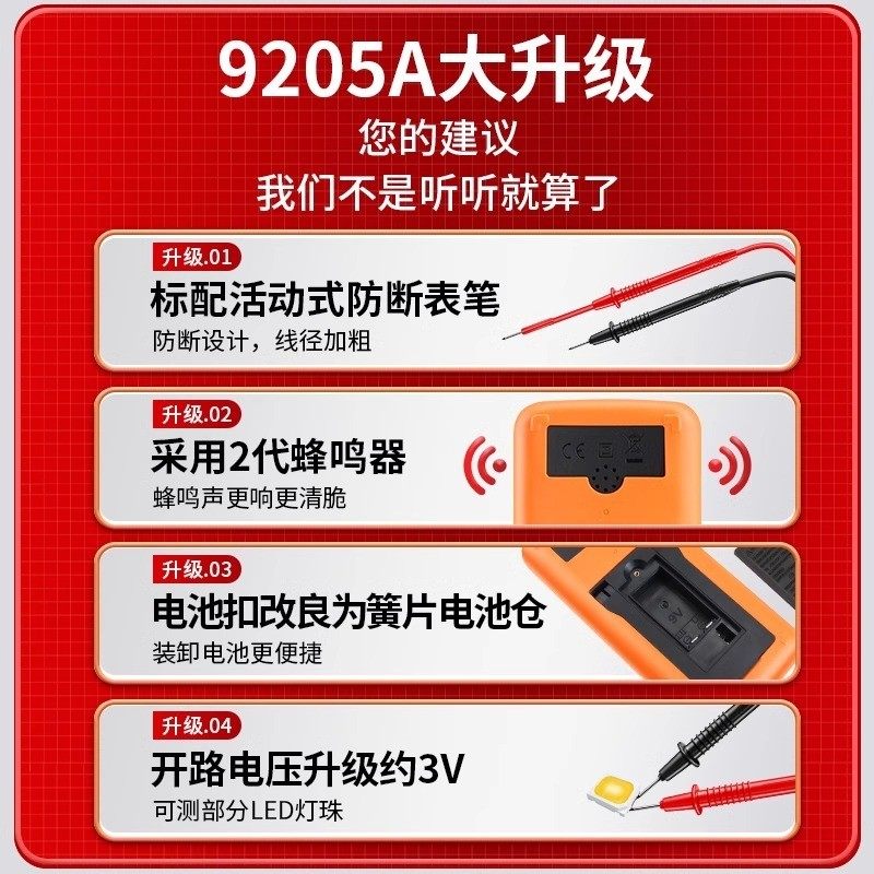 万用表数字高精度全智能防烧维修水电工专用便携家用小型DT9205A