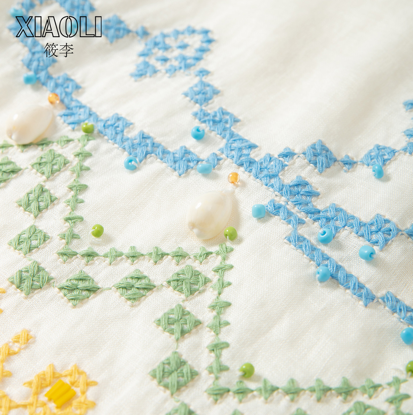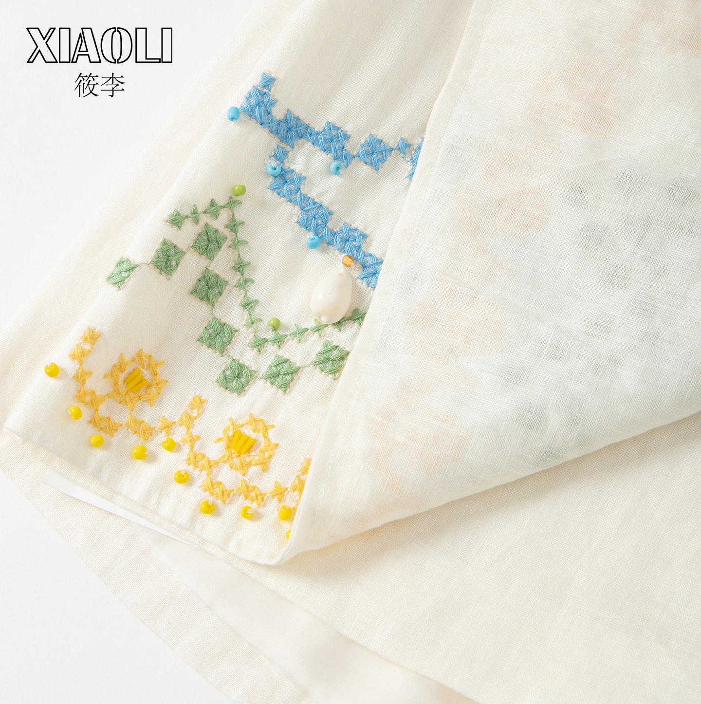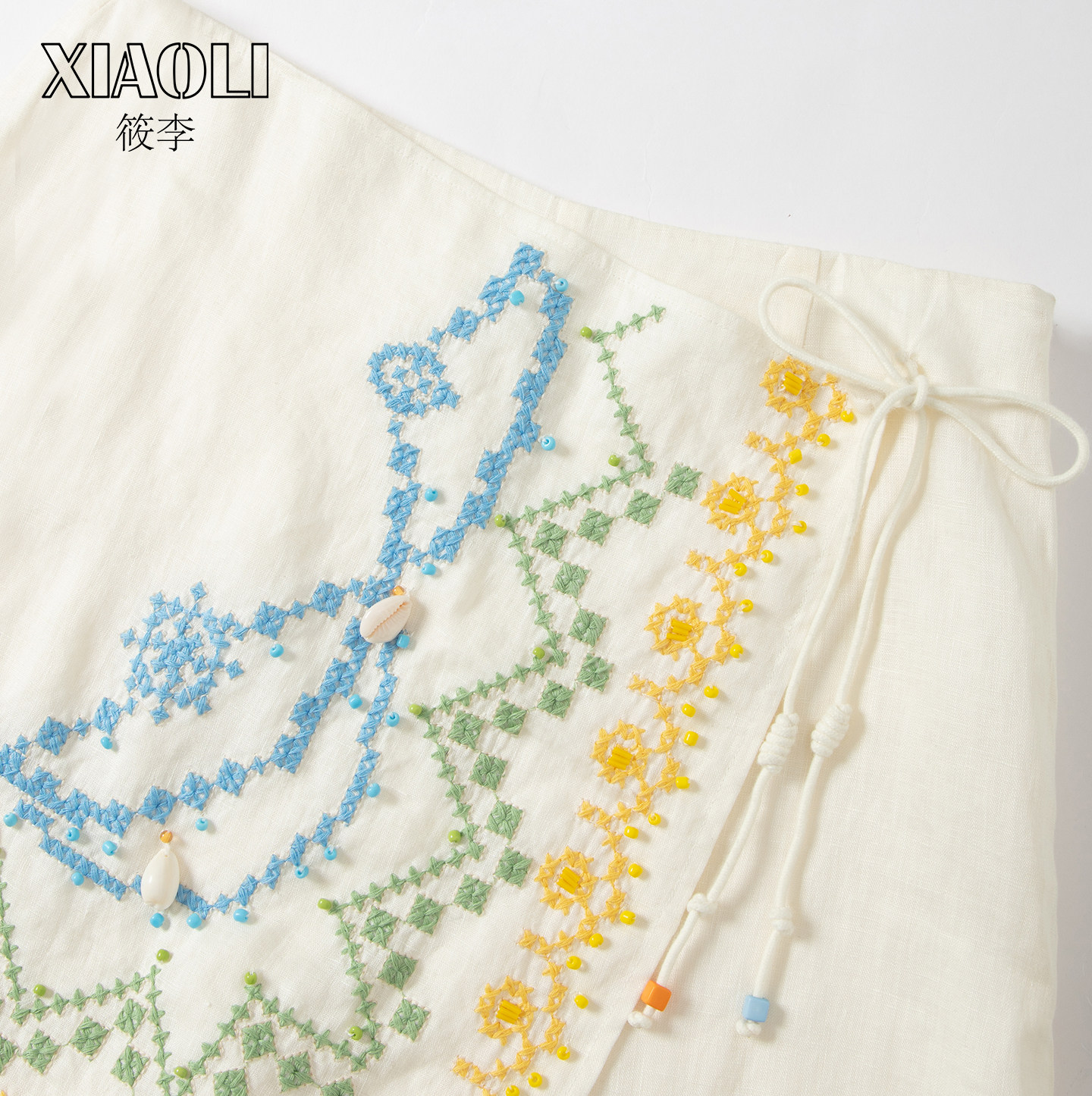 【XIAOLI筱李】度假风宽松显瘦米色十字绣搭片亚麻裙裤25秋新品