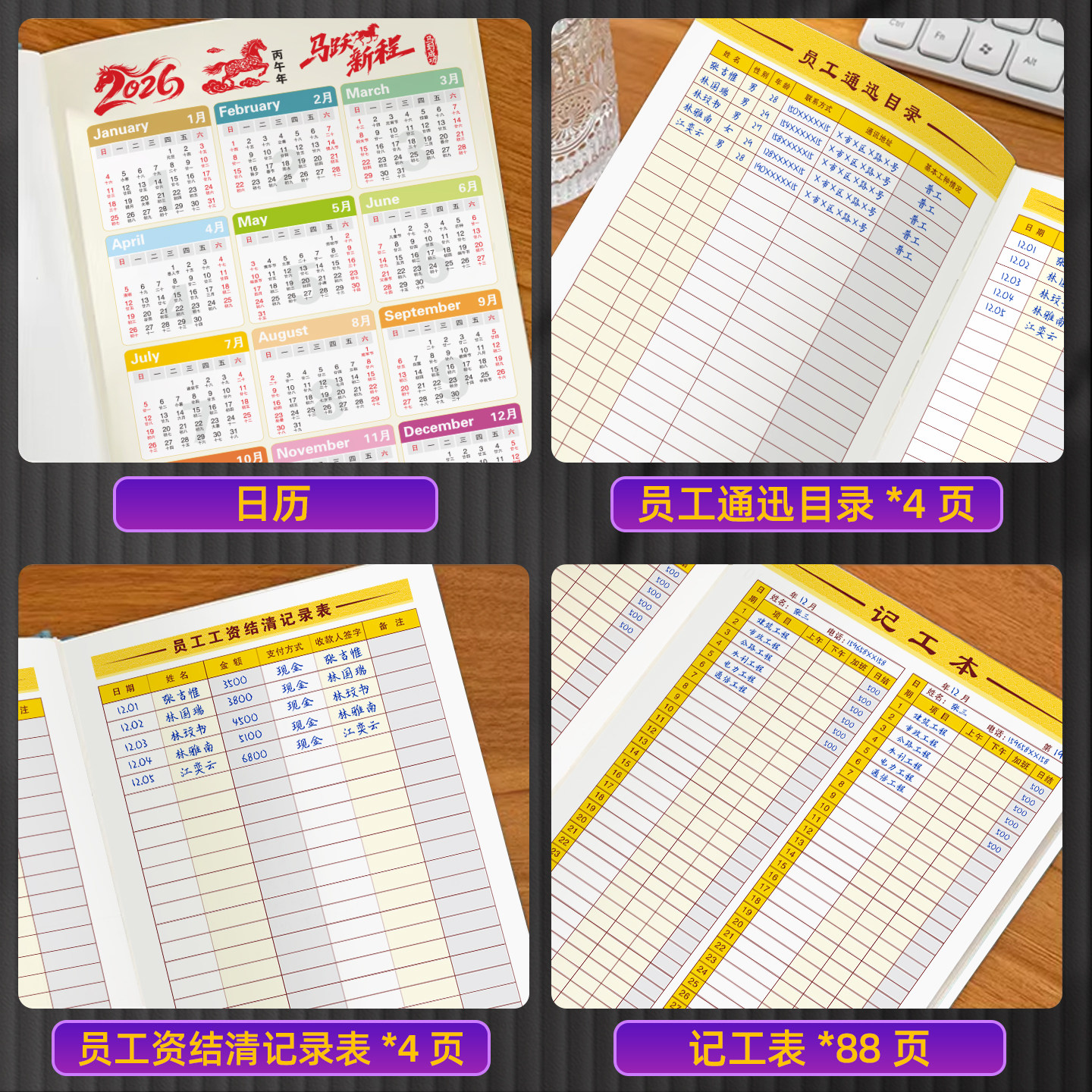 【快递物流专用记工本】31天带备注记工簿2026年新款手帐本带日期货运公司搬运工上班出勤本装卸工签到考勤表