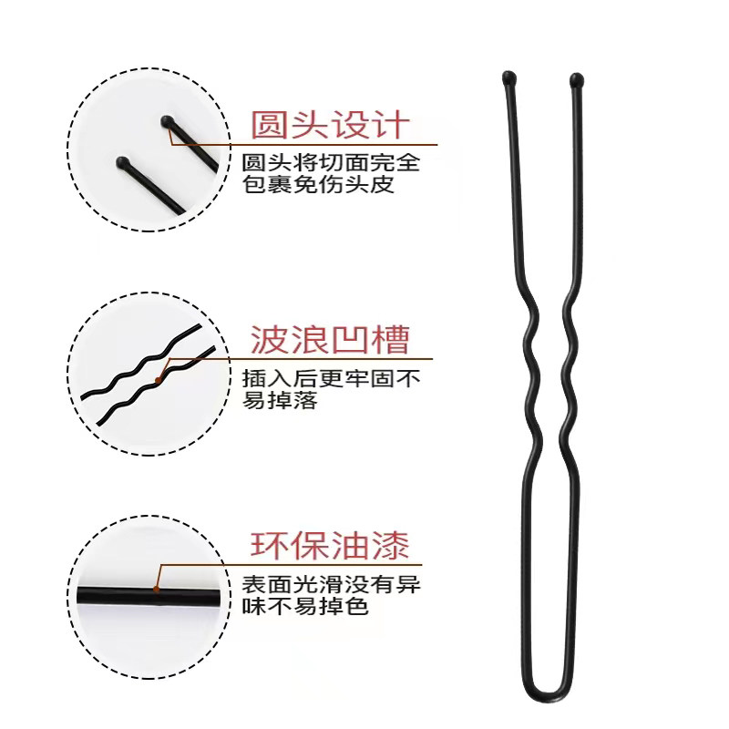 u型夹发夹盘发插针丸子头固定化妆师专用黑色u形夹发卡子U型夹