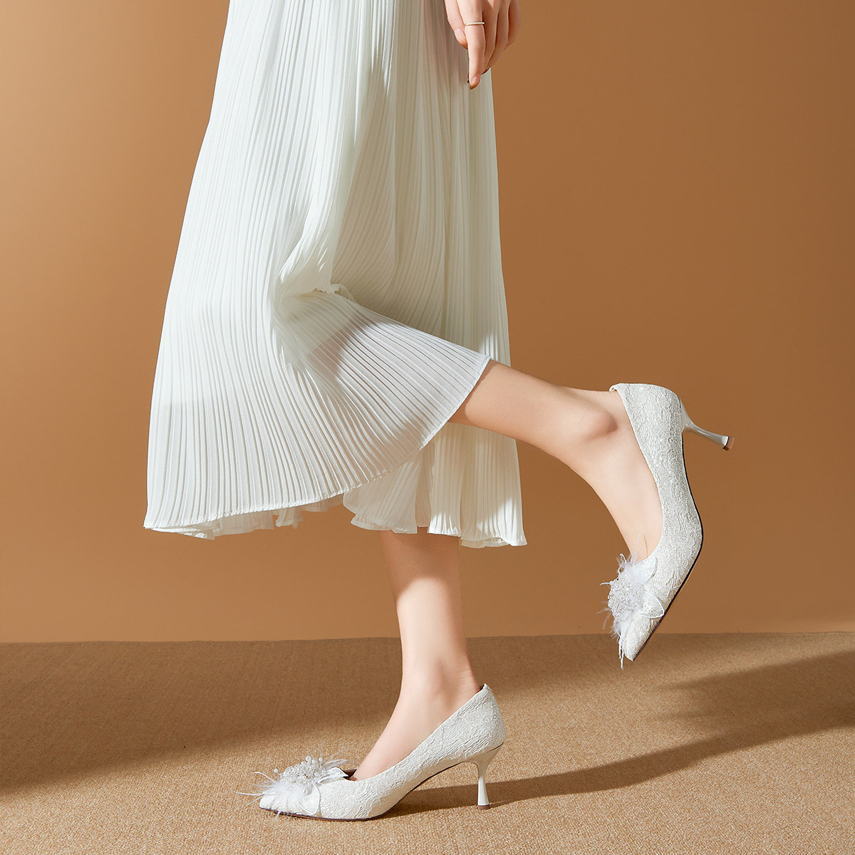 戈美其高跟单鞋女2026年春季新款尖头法式气质婚鞋细跟新娘结婚鞋