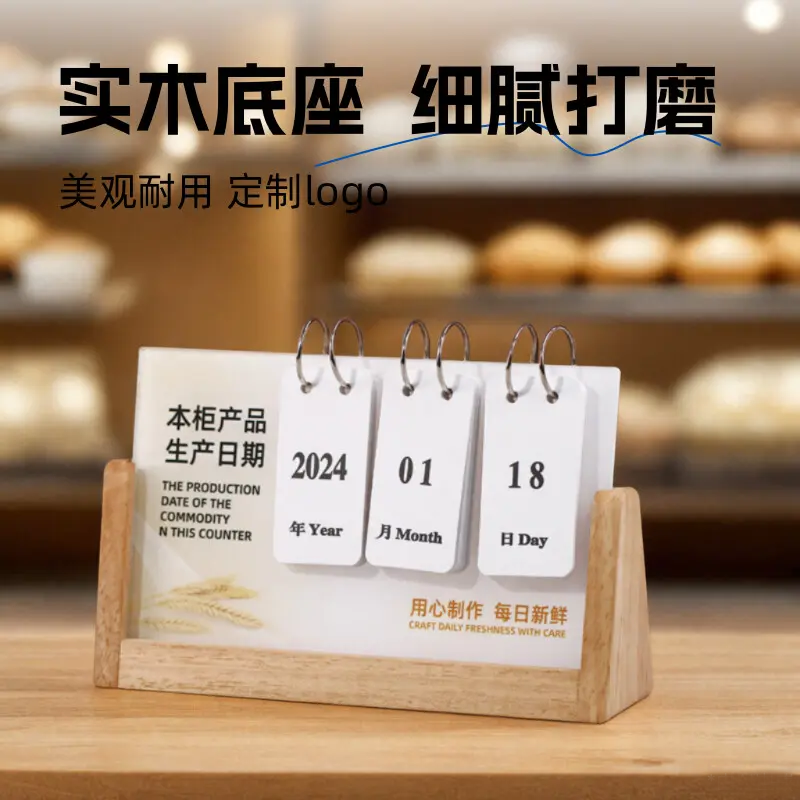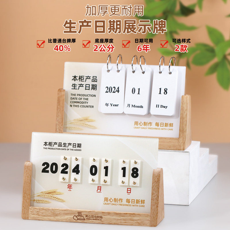 定制生产日期展示牌烘焙蛋糕店本柜商品保质期提示桌牌可翻页可调日期台历亚克力每日新鲜实木台牌