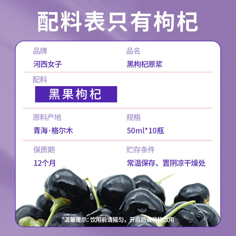 河西女子青海黑枸杞原浆花青素宁夏中宁枸杞汁原液正品特产礼盒