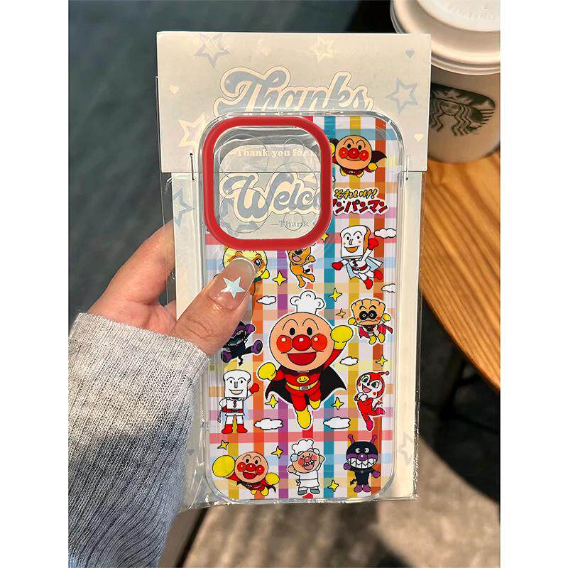 格纹面包超人适用苹果17/16pro手机壳华为pura70/p50潮mate60红米note11女OPPOreno13/9/8小米14/vivos12/s15