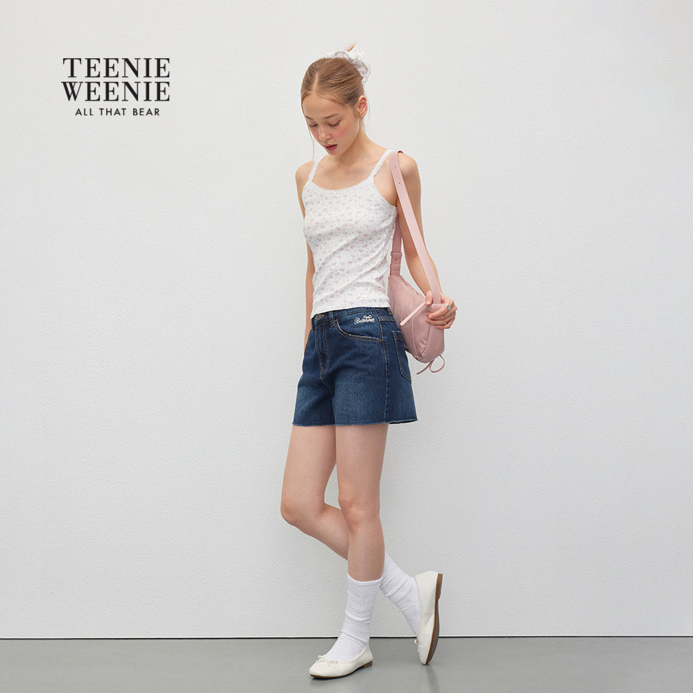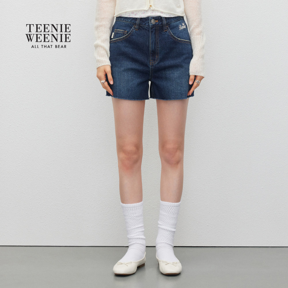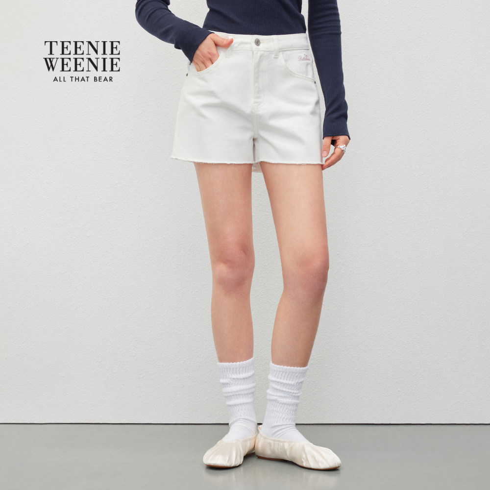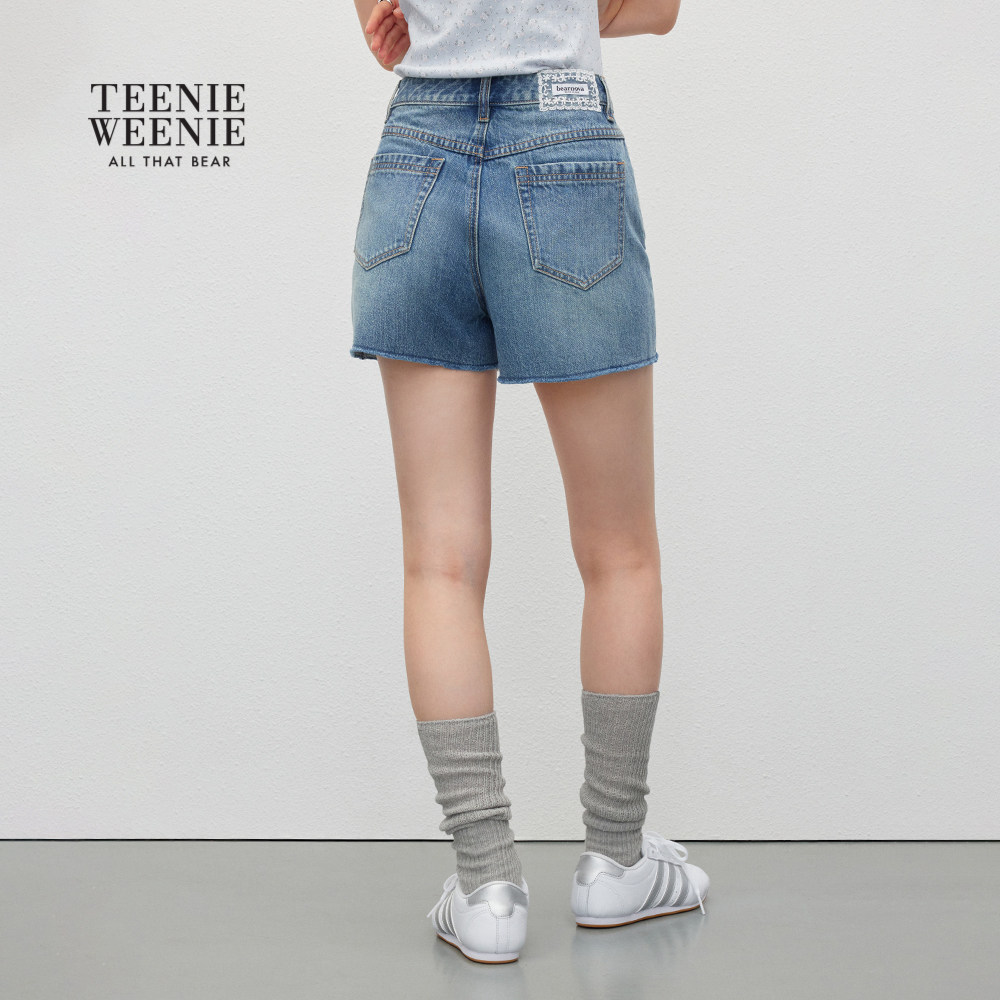 TEENIEWEENIE bearnova秋季新款简约质感刺绣牛仔裤复古水洗短裤