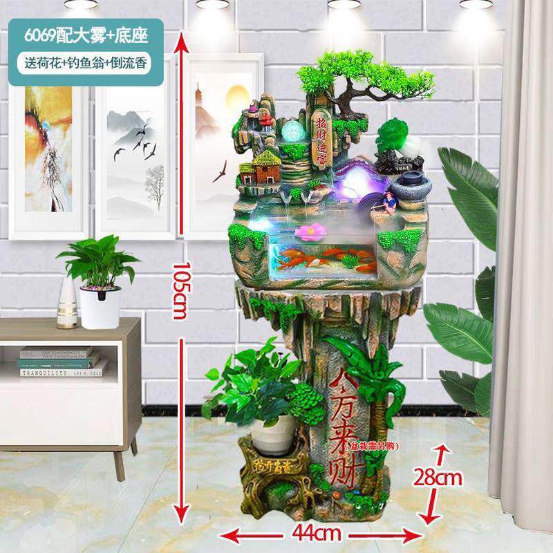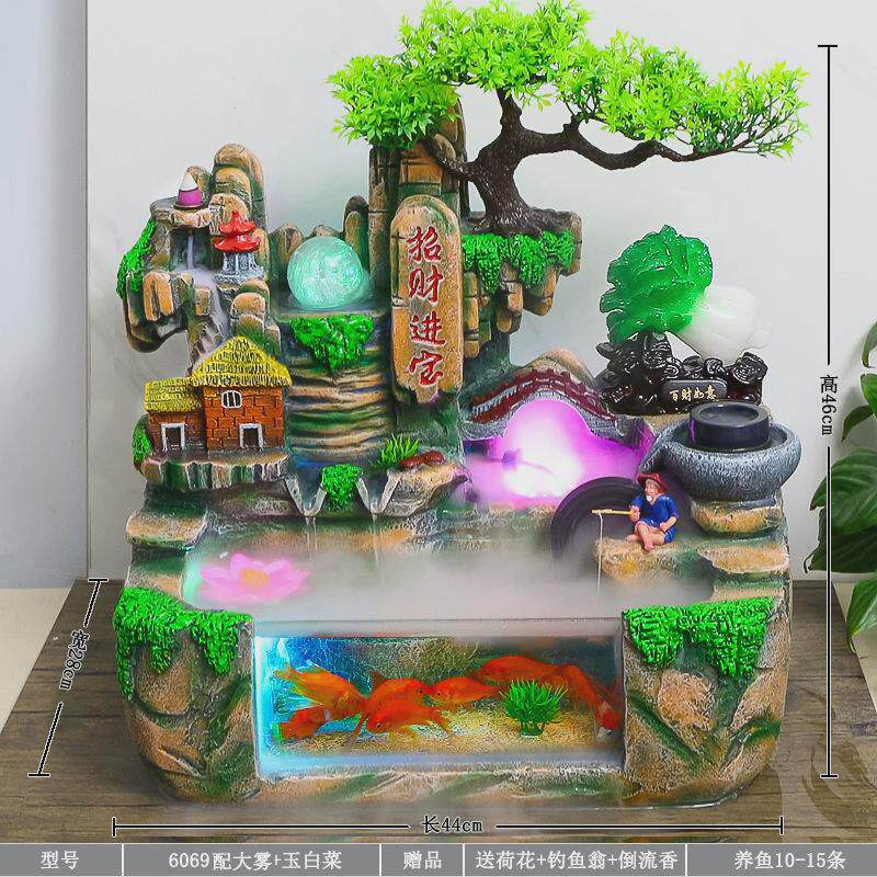 鱼缸新品客厅假山喷泉轮水景办公桌装饰品小摆件高山流水造景简约