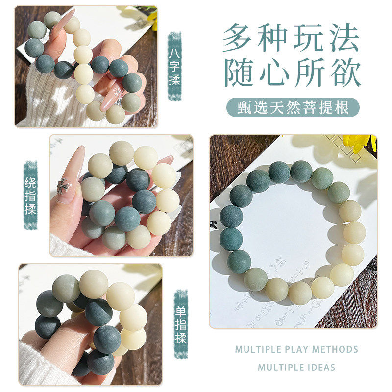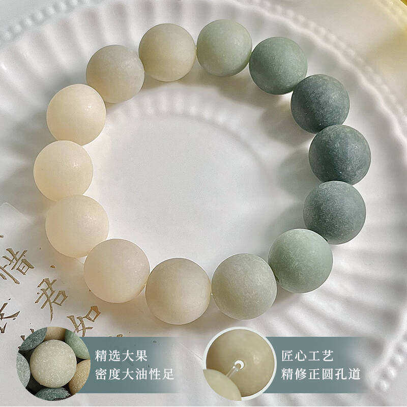 绿渐变圆珠菩提男女盘玩手串小众哑光手链解压佛珠学生文玩磨砂感