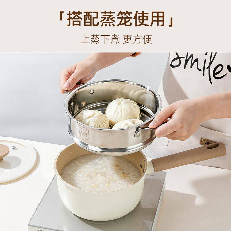 钛陶瓷不粘锅婴儿宝宝辅食奶锅一人食煮面小锅家用懒人蒸煮通用锅
