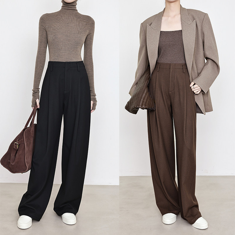 MissWiss直筒裤子女2025新款长裤休闲高腰收腹提臀黑色垂感阔腿裤