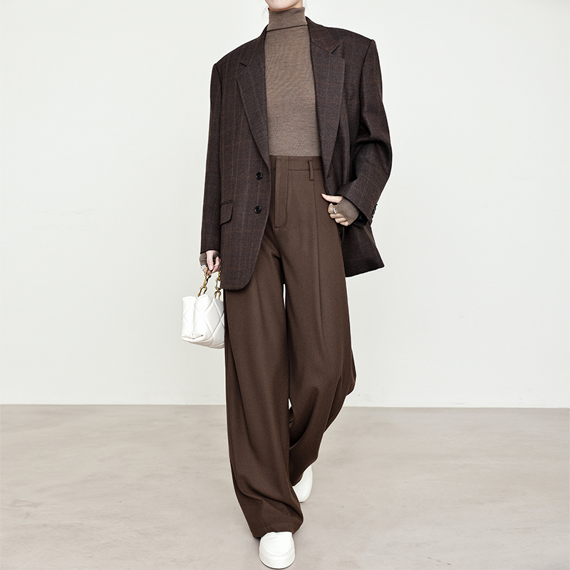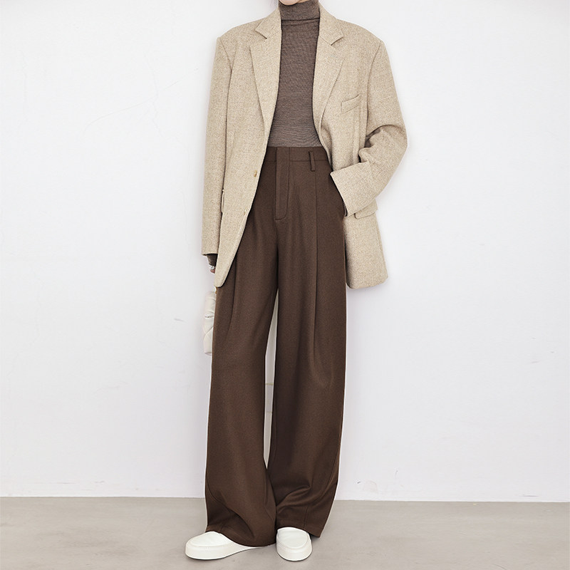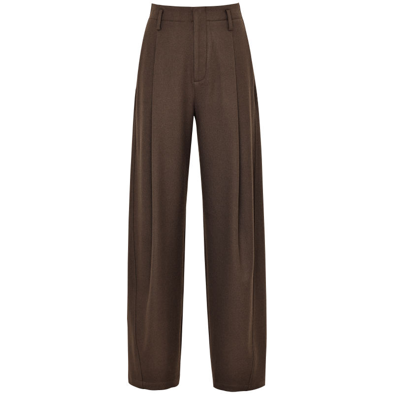 夏莫卡老钱风裤子女弯刀香蕉裤休闲西装裤美拉德棕色阔腿裤7659