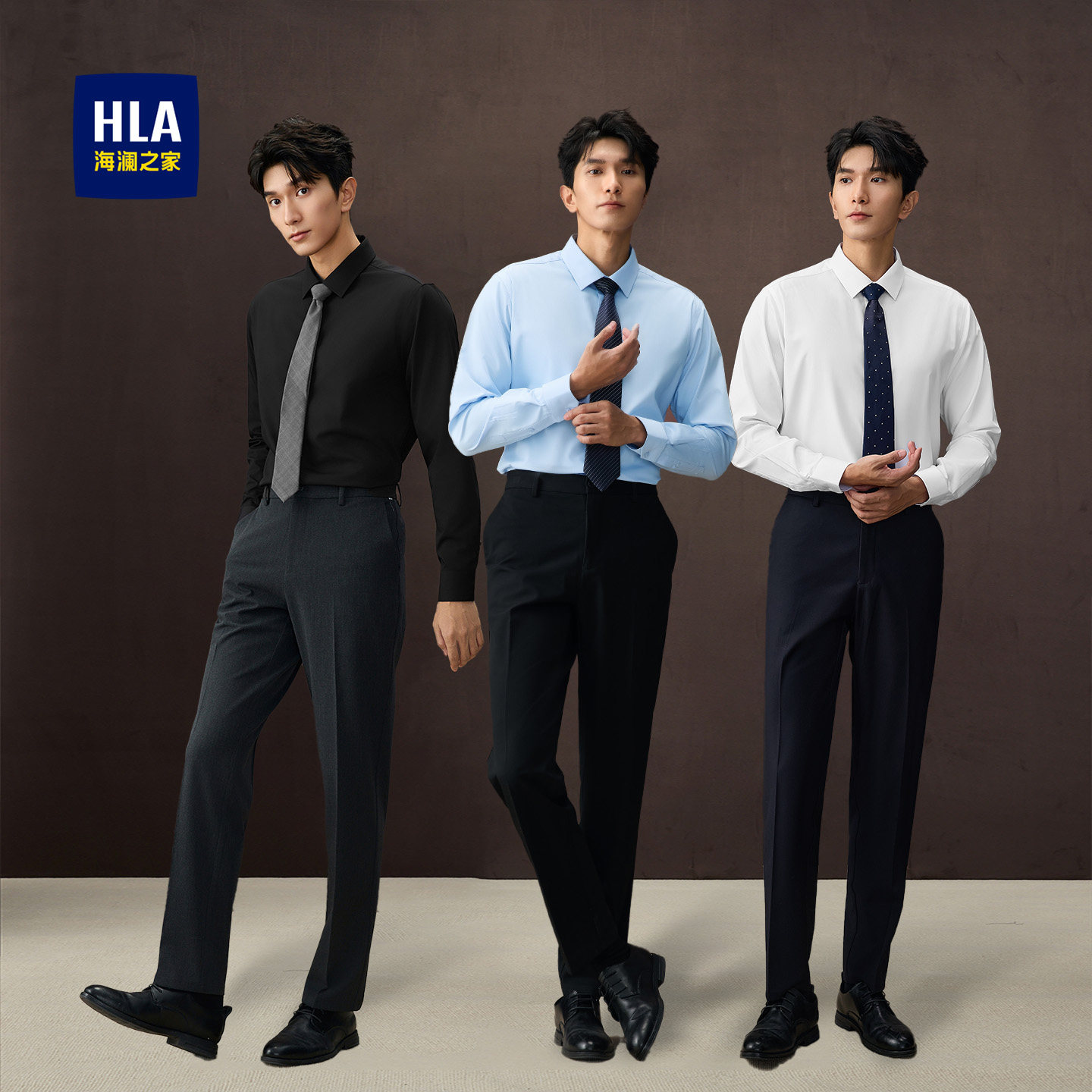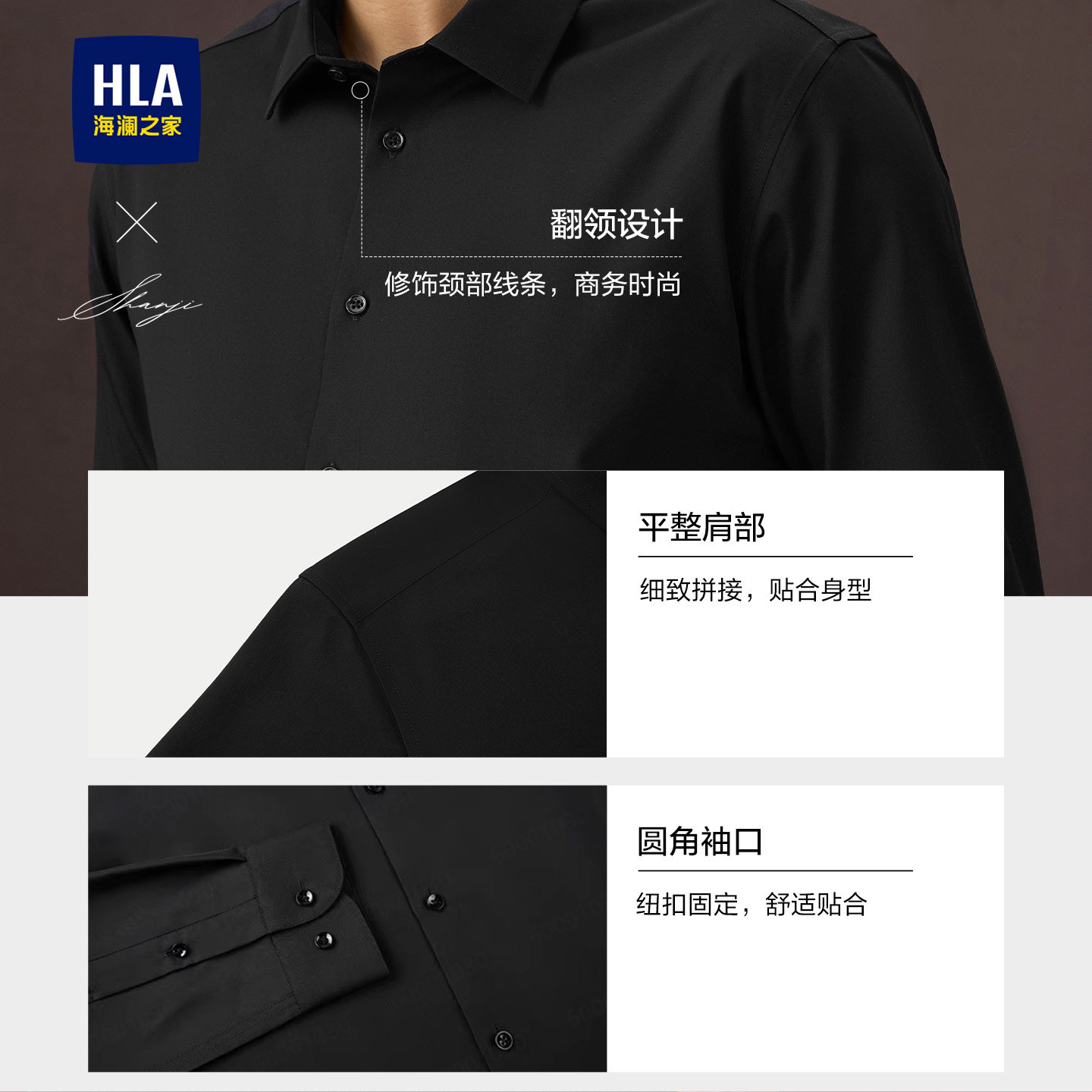 海澜之家商务正装男士长袖白色衬衫2025新款春秋季纯色黑色衬衣男