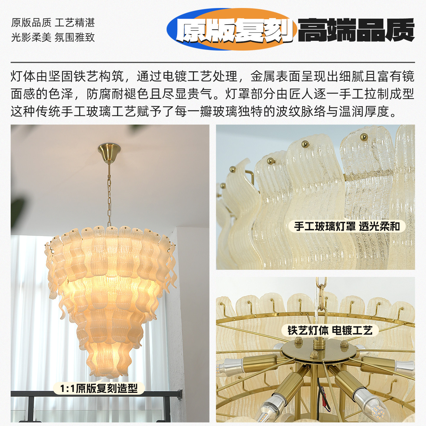 法式轻奢玻璃楼梯灯客厅美式复古复式挑空楼餐厅卧室loft吊灯