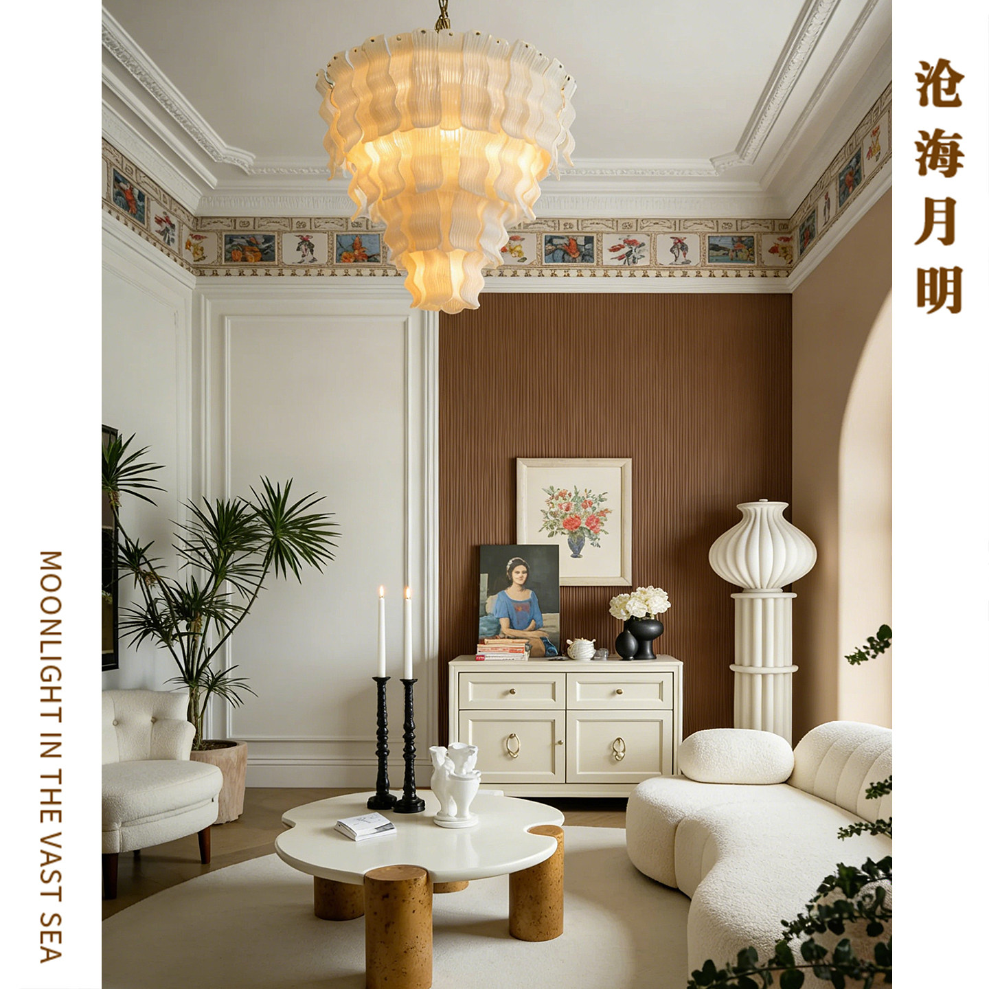 月镜餐厅吊灯意式轻奢现代茶室岛台吧台餐桌设计师高端一字长条灯