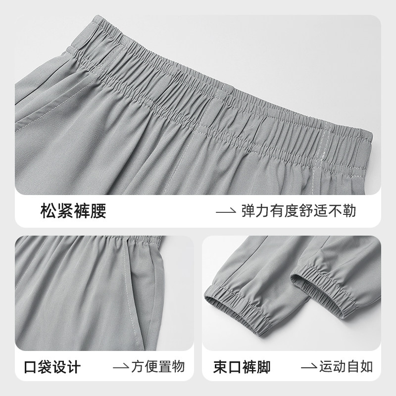 拉夏贝尔男童速干防蚊裤2025新款儿童速干运动束脚裤大童冰丝裤子