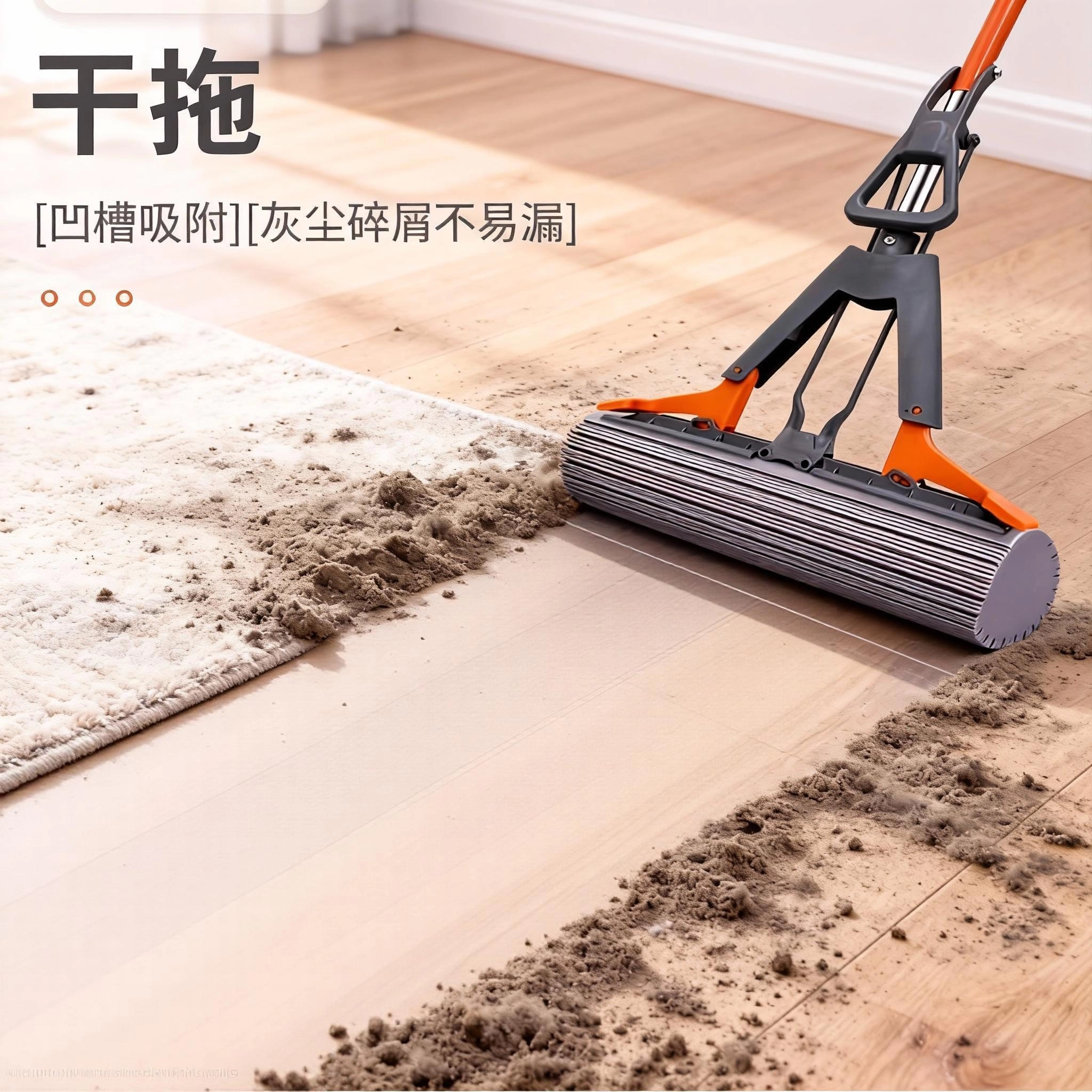 海绵拖把免手洗2025新款一拖家用吸水地拖神器净墩布胶棉头对折式
