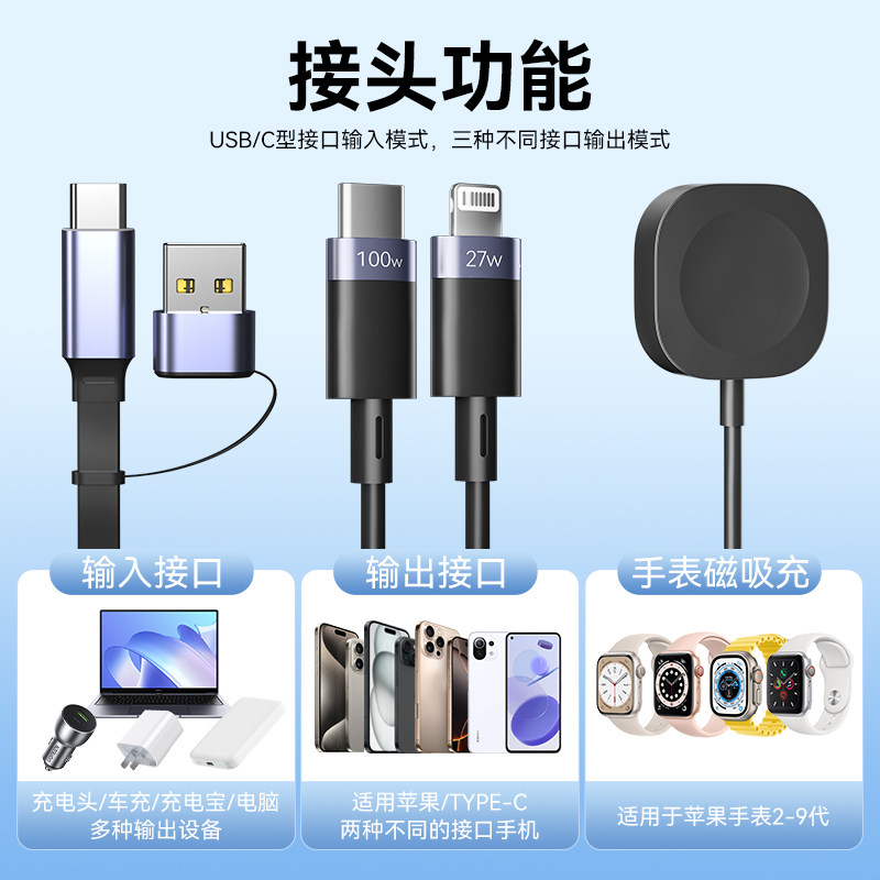 闪魔数据线福袋适用苹果iPhone华为AirPods4手机iPad平板MacBook笔记本PD双typec头lightning口快充14充电线
