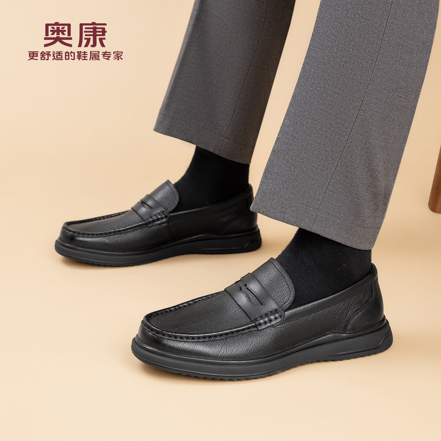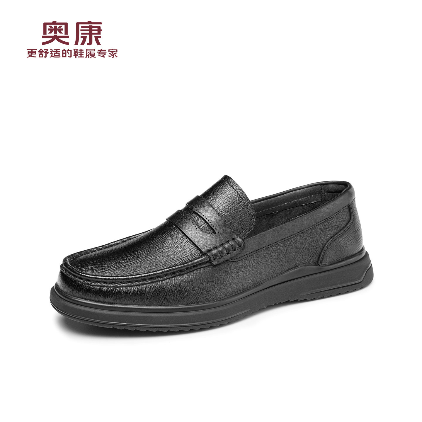 奥康官方男鞋春秋季真皮商务休闲皮鞋时尚套脚平底脚蹬舒适爸爸鞋