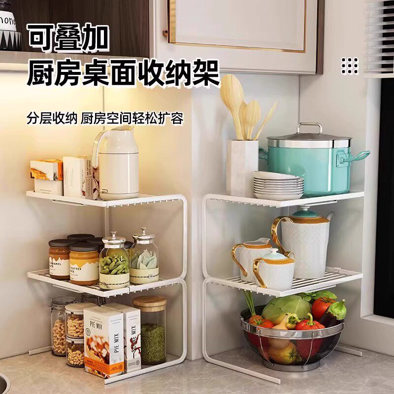 厨房桌面置物架锅具收纳分层隔板架子橱柜内碗碟台面双层衣柜墙角