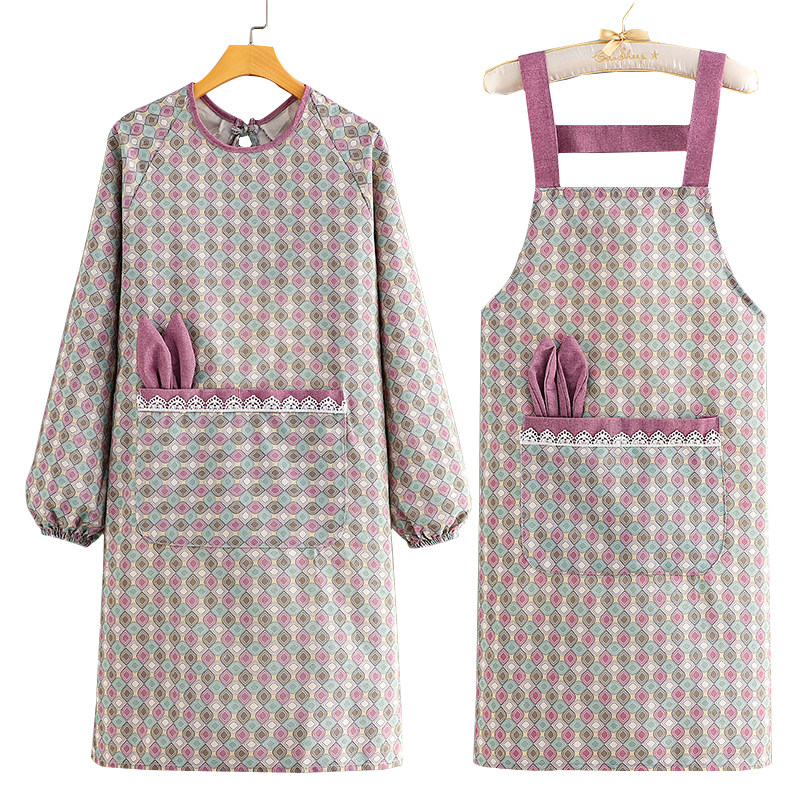 新款家用厨房做饭围裙长袖罩衣工作服上班洋气可围腰防水防油帆布