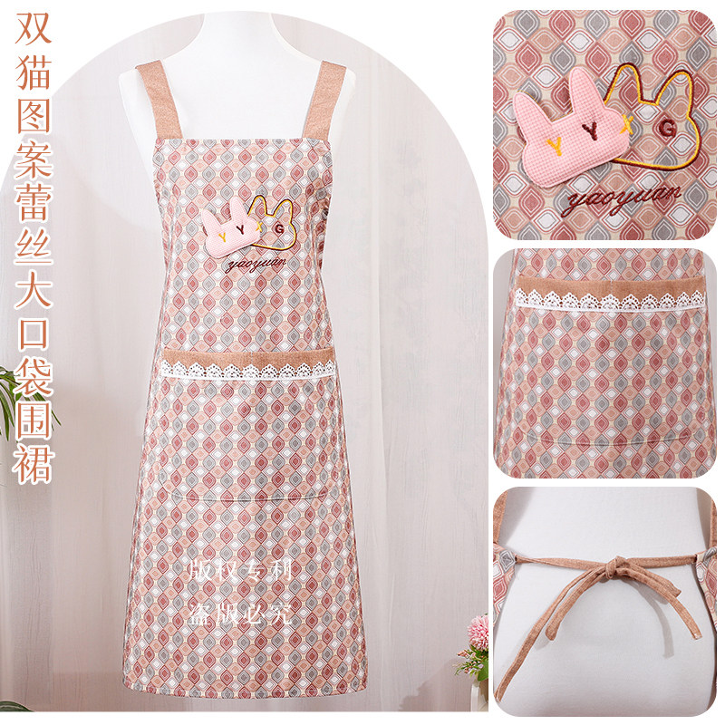 厨房小清新围裙ins风工作服可调节文艺家用防脏定制logo棉麻围腰