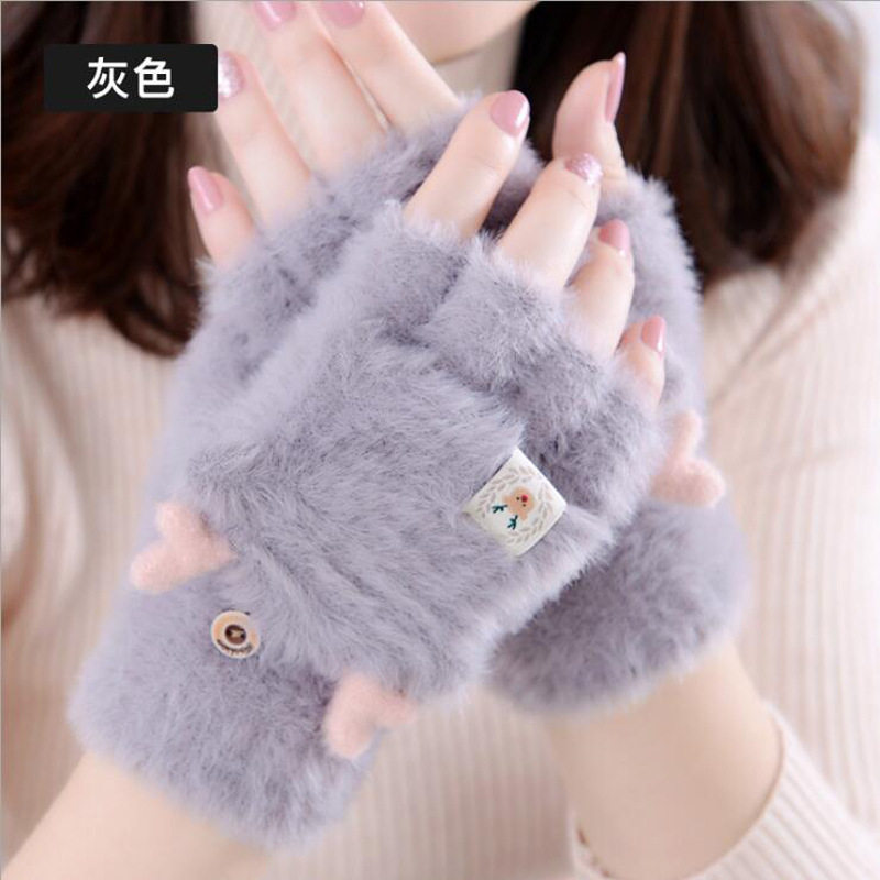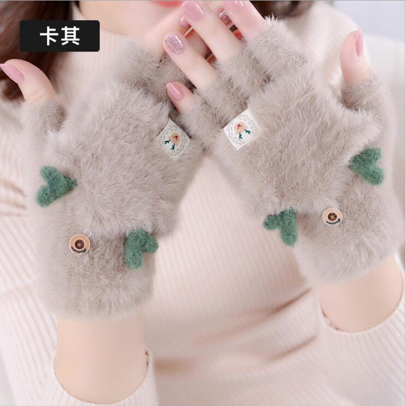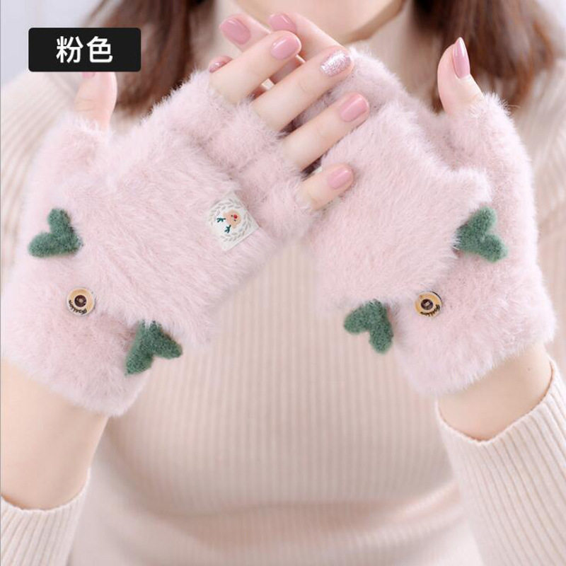 mikko联名可爱卡通猫咪毛绒手套女冬季翻盖半指触屏加厚骑行保暖