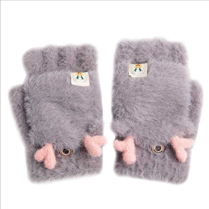 手套女学生可爱冬季骑车女士半指加厚加绒秋季保暖天白色猫爪翻盖