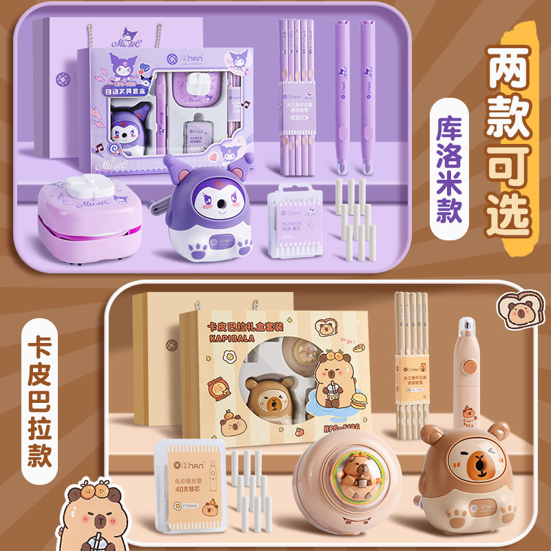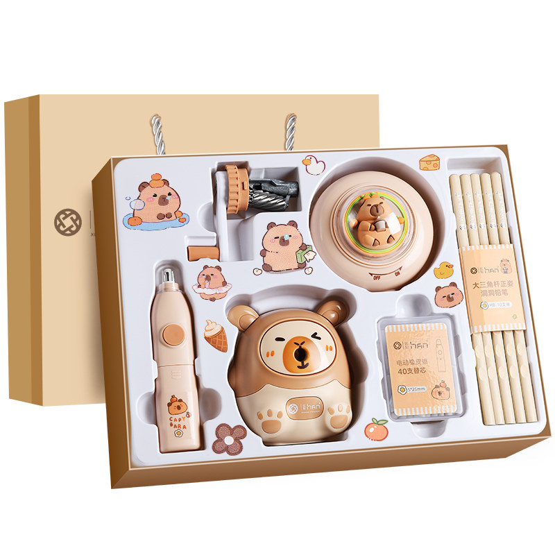 卡皮巴拉电动文具套装日常学习用品小学生开学大礼包礼盒入学推荐