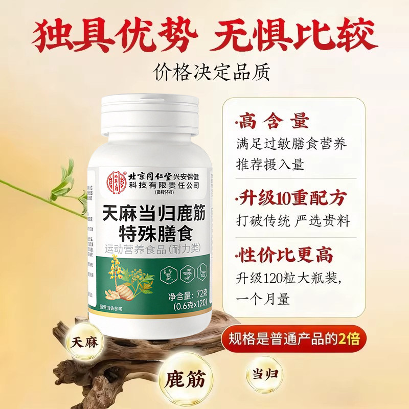【北京同仁堂】天麻当归鹿筋片官方旗舰店正品草本萃取药房直售