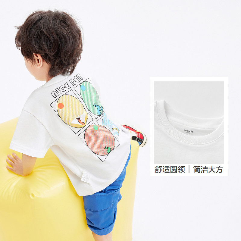 婴蓓依儿童短袖t恤男童女童夏装薄款婴儿宝宝a类纯棉白色半袖上衣
