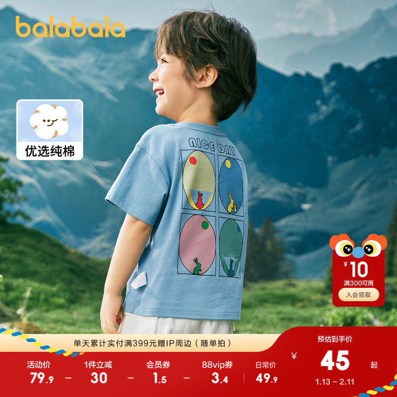 巴拉巴拉童装儿童短袖t恤男童春夏装2025纯棉刺绣上衣T恤亲子装潮