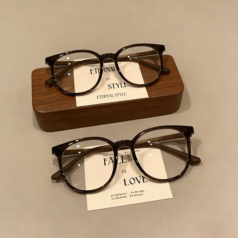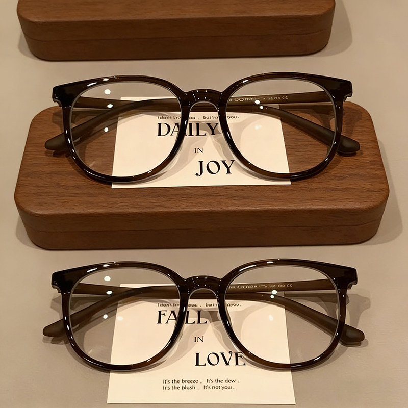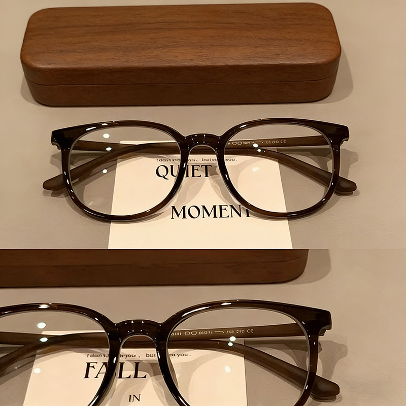 栗子茶温柔小众复古圆框可配度数近视眼镜素颜百搭防蓝光眼镜黑框