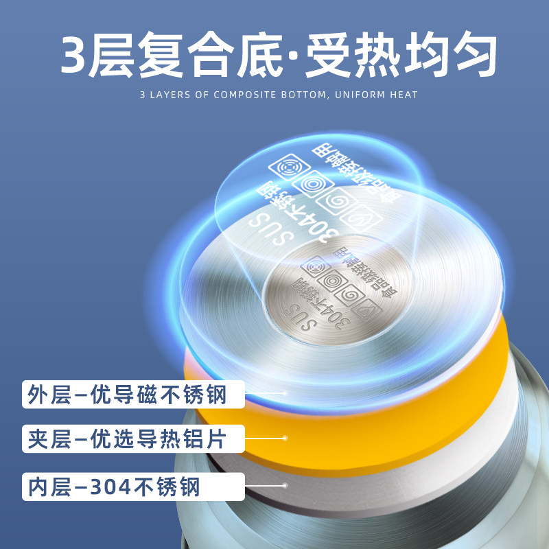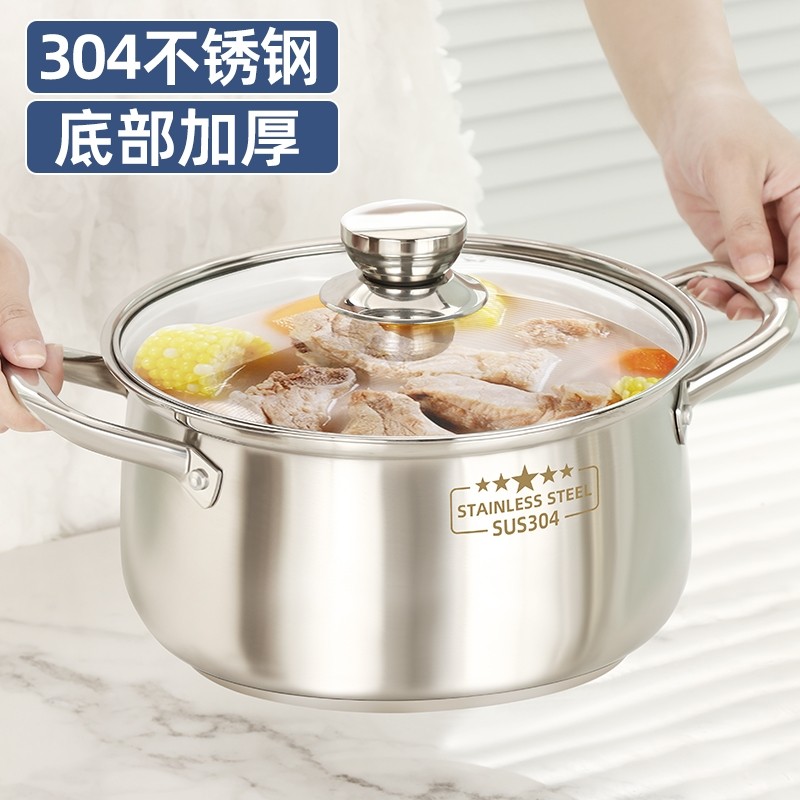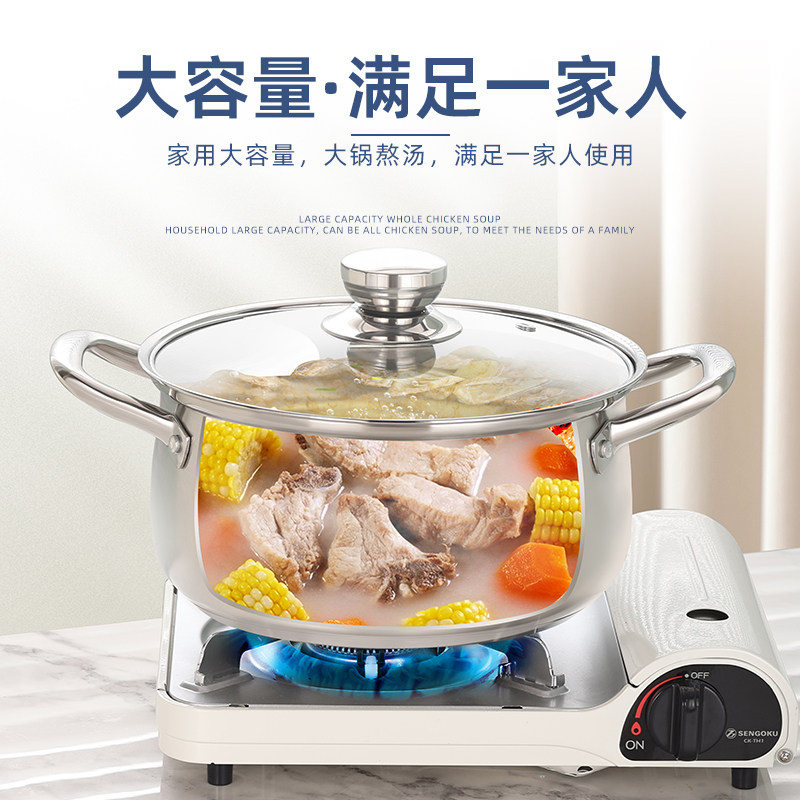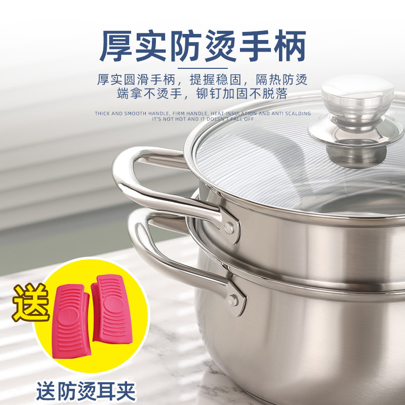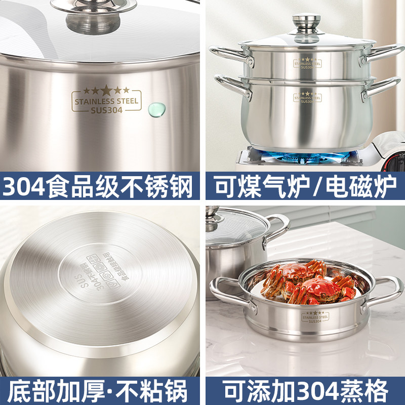 德国304不锈钢煮锅家用燃气汤锅带蒸笼煲汤锅食品级双耳锅电磁炉