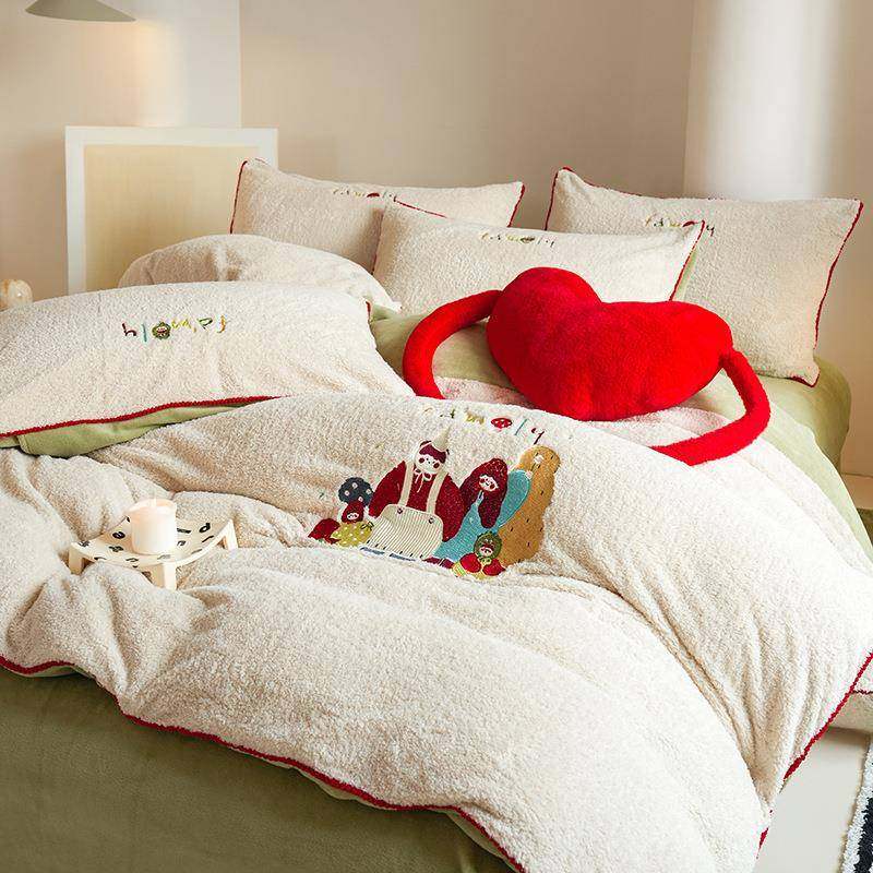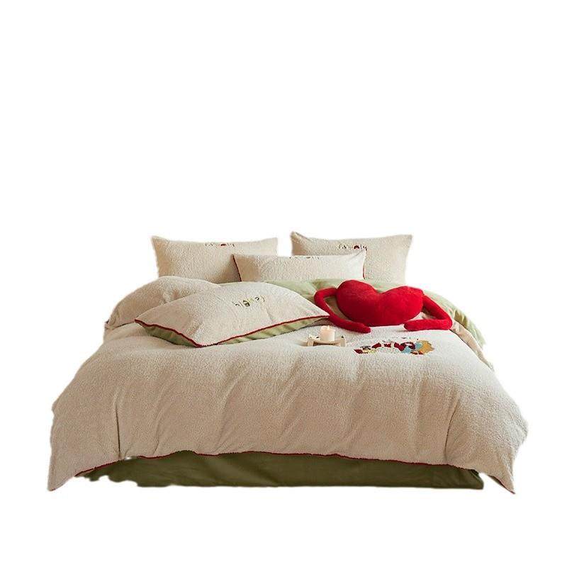 A类母婴级保暖加厚四件套法兰绒双面珊瑚绒绣花三件套床上用品