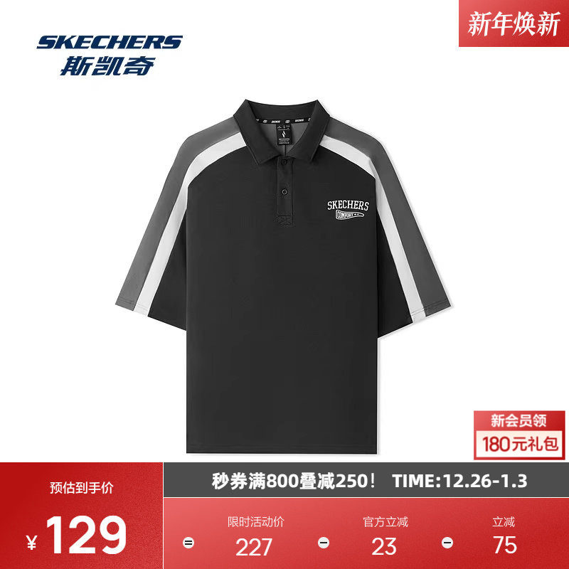 斯凯奇2025新品柔软舒适宽松短袖运动POLO衫男女同款