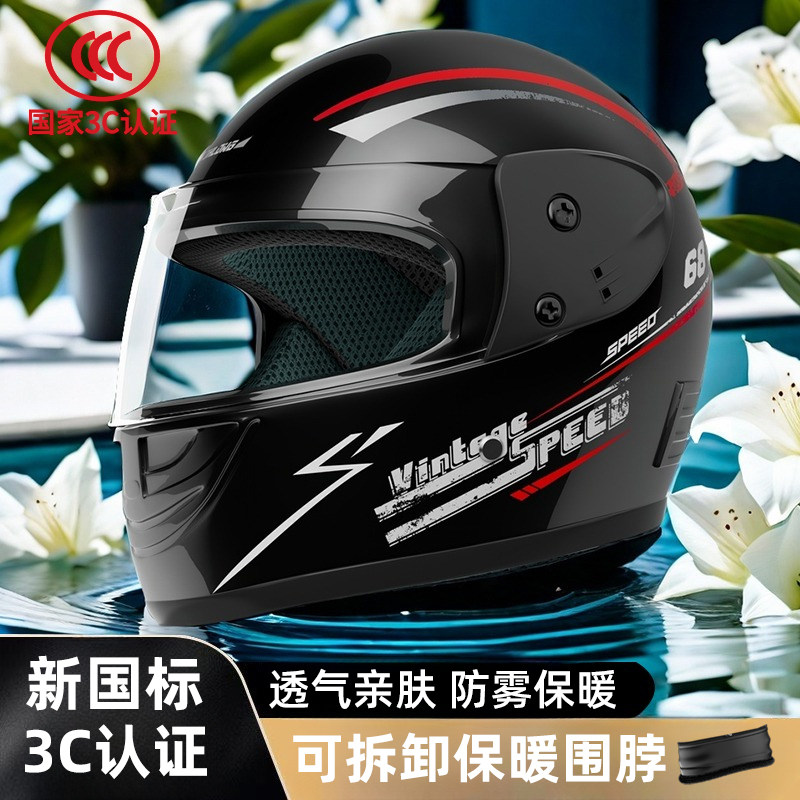 3C认证电动摩托车头盔男女四季通用盔秋冬保暖防雨防雾全盔安全帽