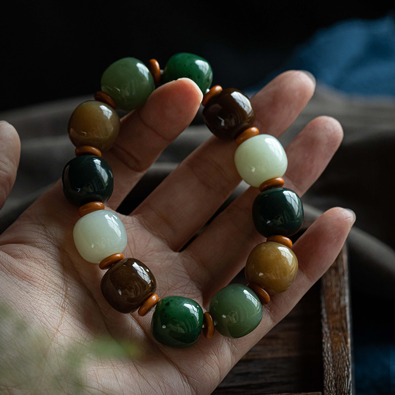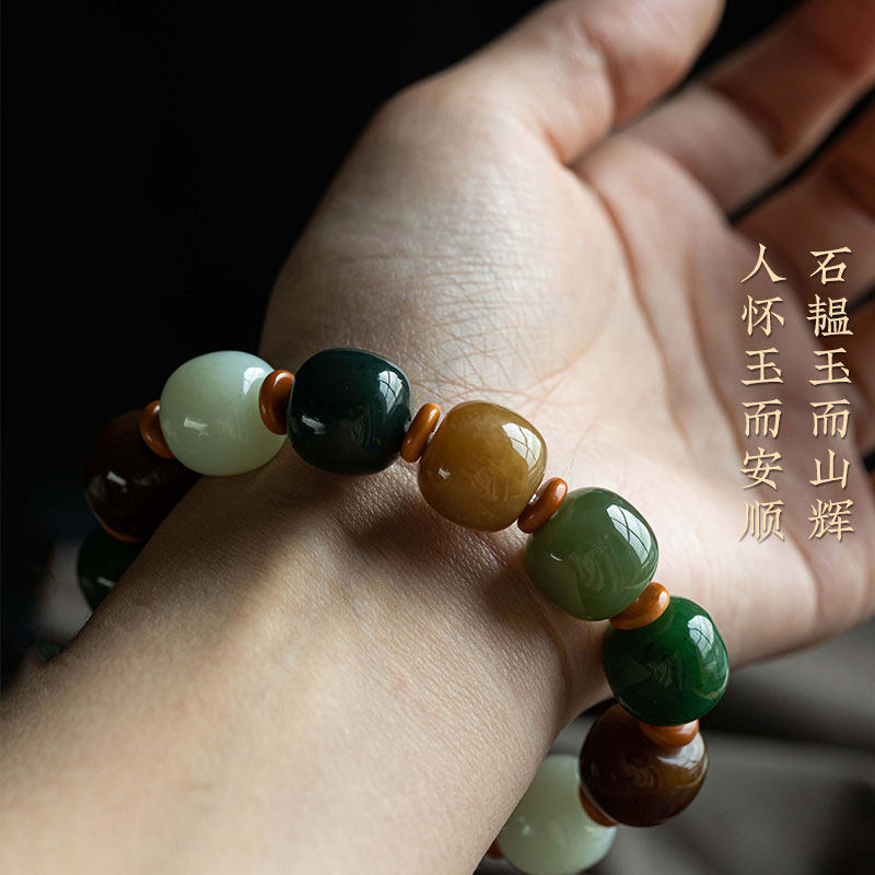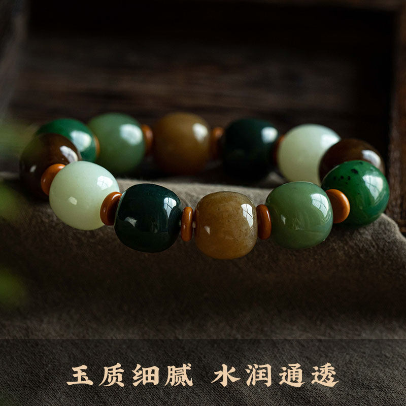 设计师独家款!天然和田玉青花手串正品桶珠原创本命年男女手链