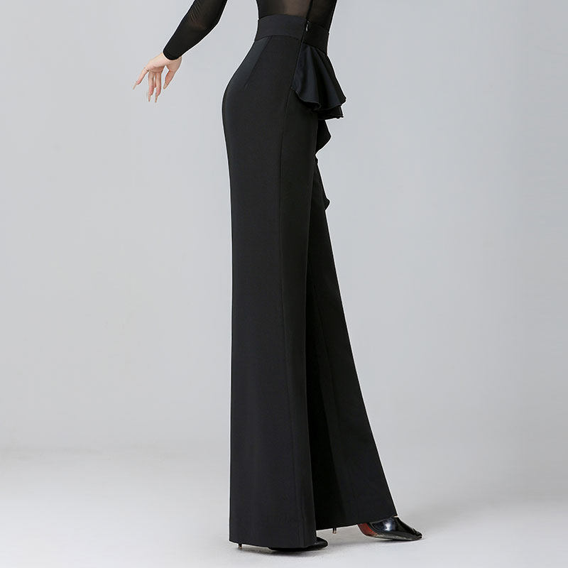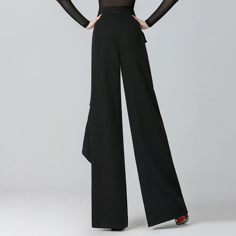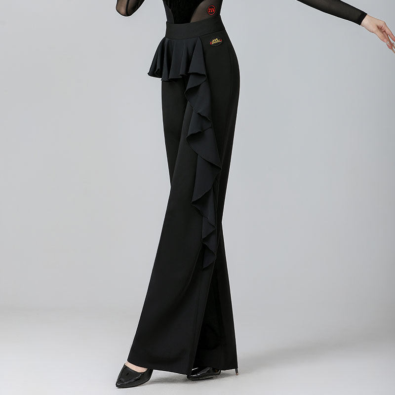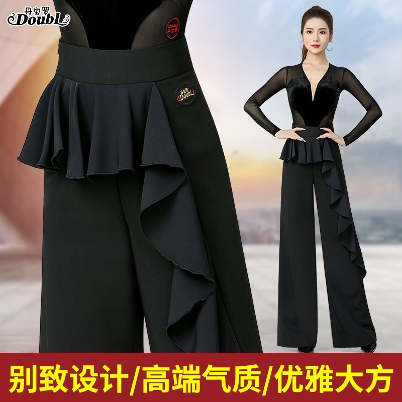 丹宝罗拉丁舞舞蹈裤跳舞女裤气质舞蹈长裤黑色交谊舞国标舞练习裤
