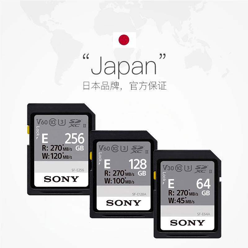 【自营】索尼64GB SD存储卡E系列U3V30读速高达270MB/s相机内存卡