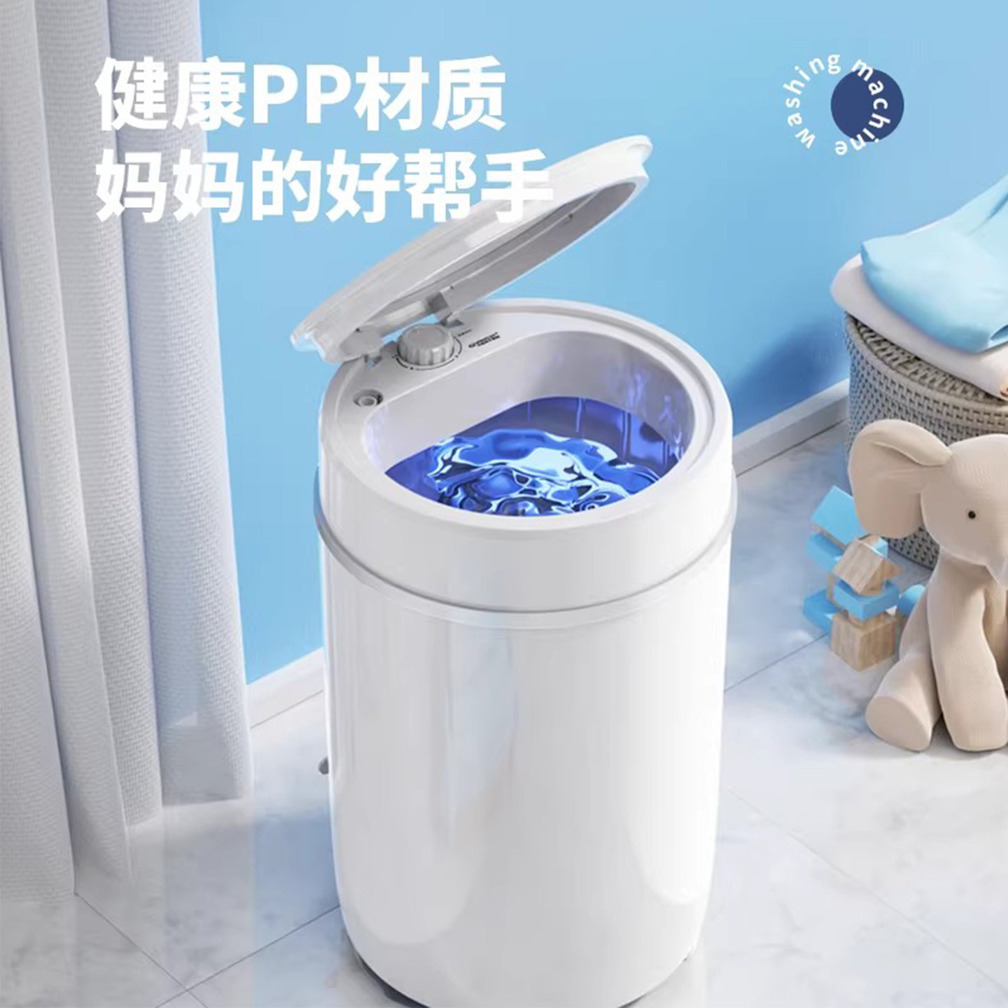 “蓝光抑菌,健康洗护”“6.5KG大容量”