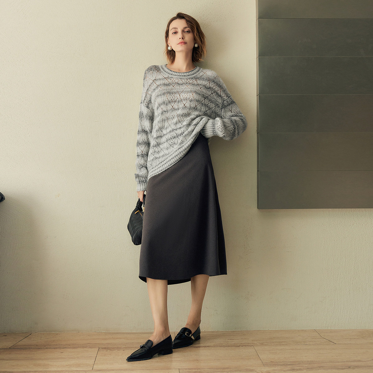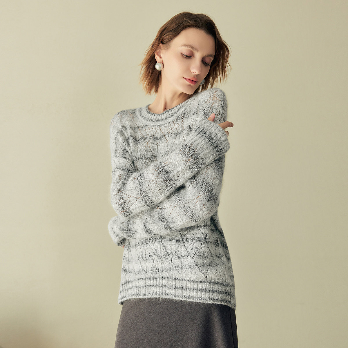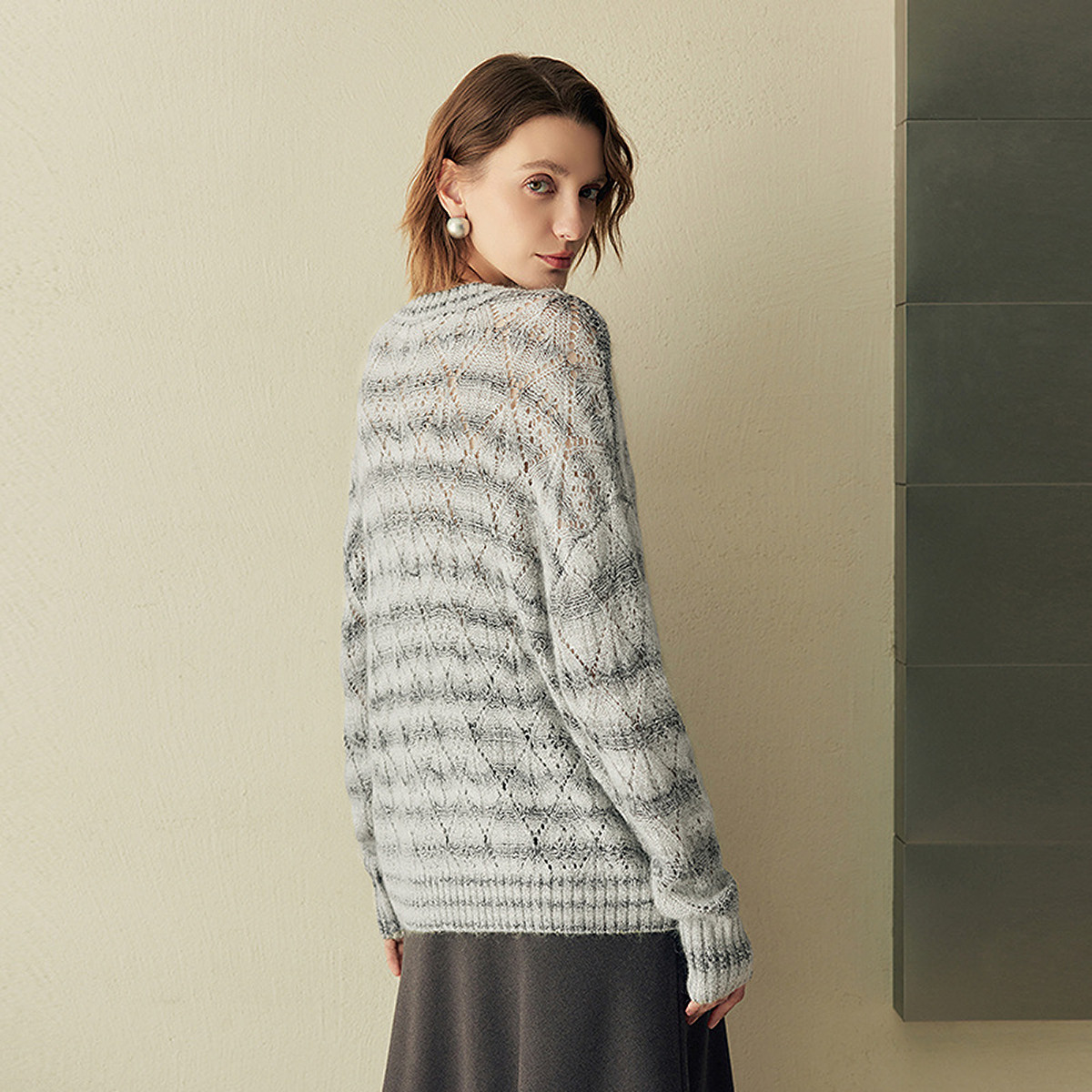 FINITY菲妮迪针织衫2025年秋季新款简约气质马海毛镂空羊毛毛衣女