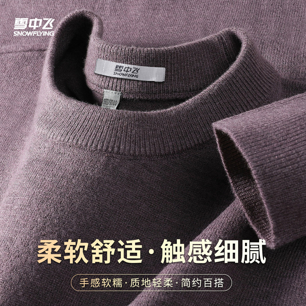雪中飞马年吉祥半高领加厚毛衣男纯色保暖舒适百搭打底套头上衣